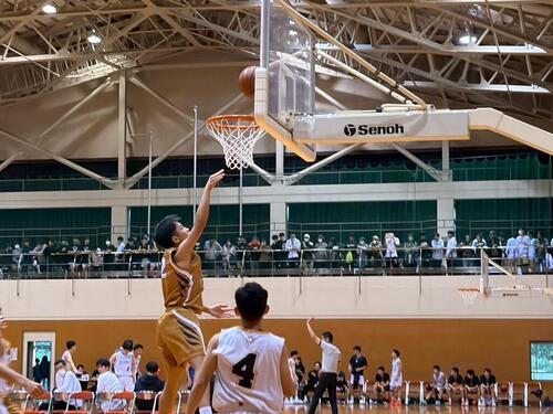 続く準決勝では東山高校と戦いました。ディフェンスを起点に粘るも相手も着実にフリースローを沈め、徐々に突き放される展開となりました。随所で八木(南桑中)や國門(守山北中)のスリーポイントシュートなどで見せ場は作るもの力の差を見せつけられ、74-127で敗れました。