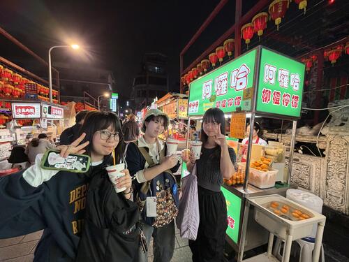夜には再び大学生と合流し、地元の若者で賑わう大東夜市へ。日本ではなかなか味わうことのできないローカルな雰囲気の中、台南グルメの食べ歩きを楽しみました。