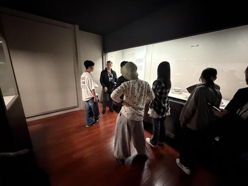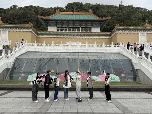 旅の締めくくりは、国立故宮博物院。かつて清王朝が遺した文物を中心に70万点を超える収蔵品を有しており、世界四大博物館の一つとしても知られています。故宮の象徴でもある「翠玉白菜」と「肉形石」は、残念ながらどちらも出張展示中で見られませんでしたが、中国の歴代皇帝が惚れ込んだ名品の数々に、生徒たちも感動を隠せない様子でした。また、帰りの時間が迫る中、突然の全館停電というアクシデントにも見舞われましたが、10人揃って無事に全ての活動を終えることができました。
