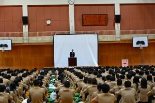 式典では、校長先生より「挨拶の大切さ」や「リアルな場でつながることの大切さ」について、温かなメッセージが送られました。続いて、生徒指導部長および進路指導部長からは、有意義な春休みの過ごし方や、次年度を見据えた心構えについて講話がありました。