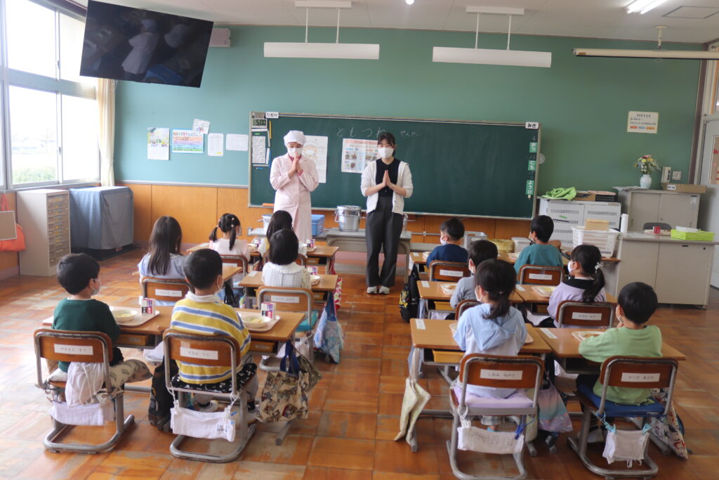 本日より、子どもたちが楽しみにしていた給食が始まりました。1年生は、栄養教諭の先生から、給食のきまりや身支度の大切さについてお話をしていただき、みんなで給食の準備・片付けの練習をしました。