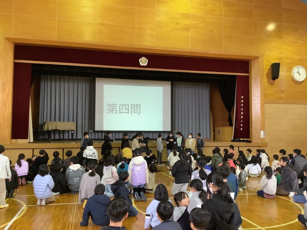 また、放送委員からは「イントロクイズ」があり、なかよし班で答えを考えました。