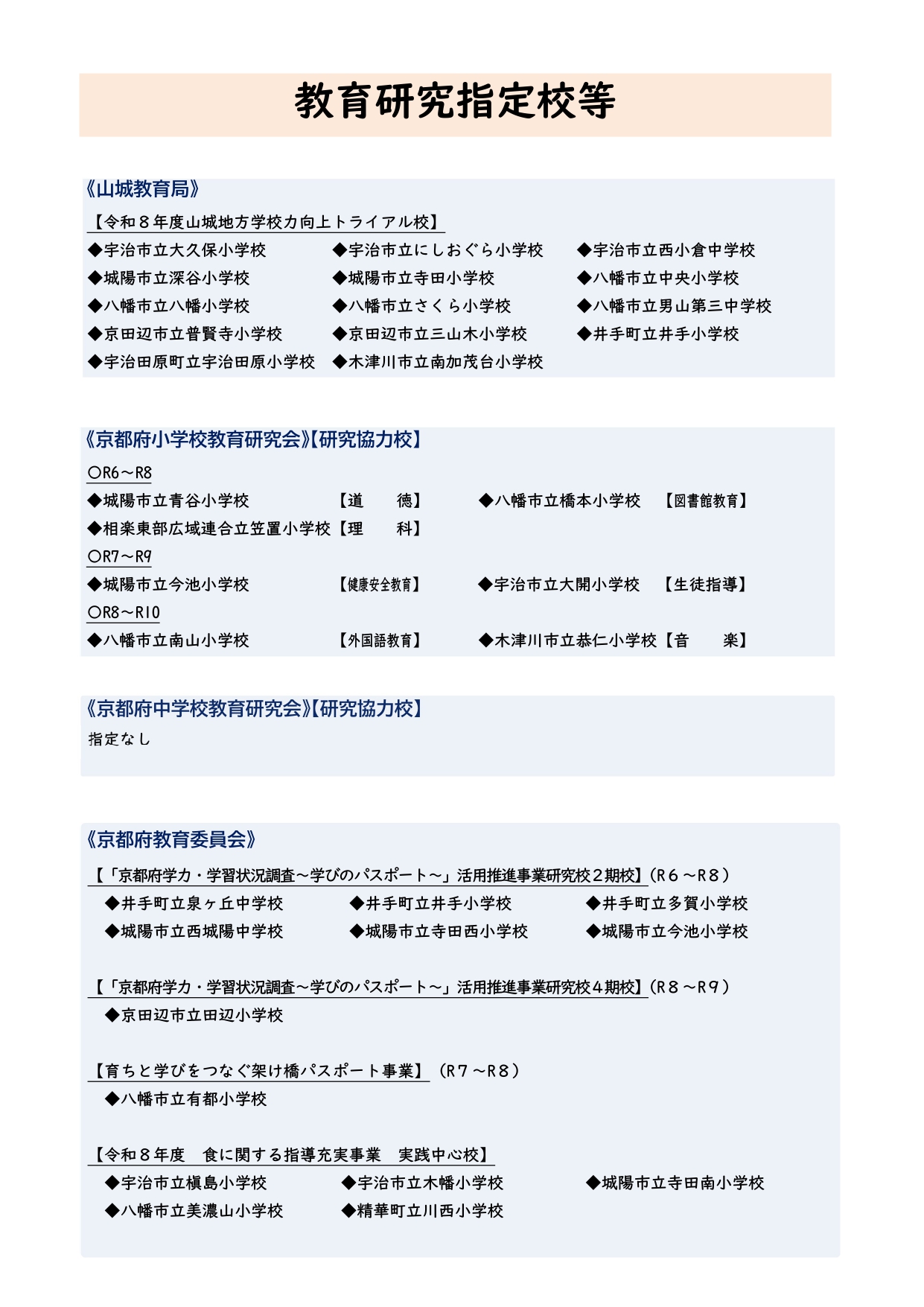 令和8年度「山城地方学校力向上トライアル校」事業指定校に関する文書を掲載しました。(令和8年3月11日掲載)