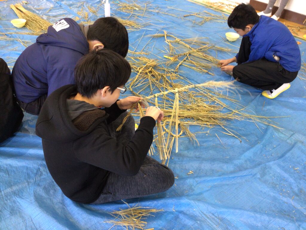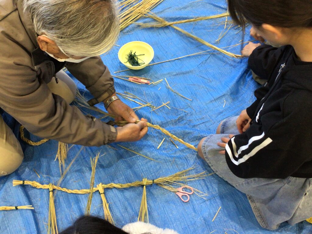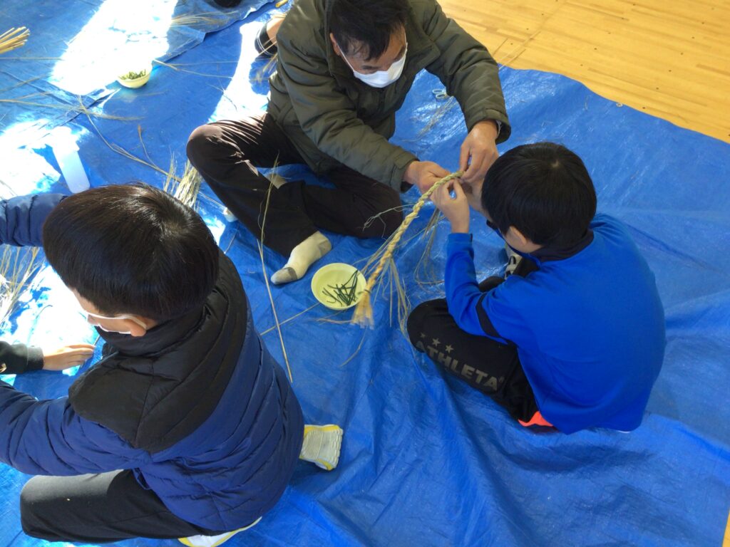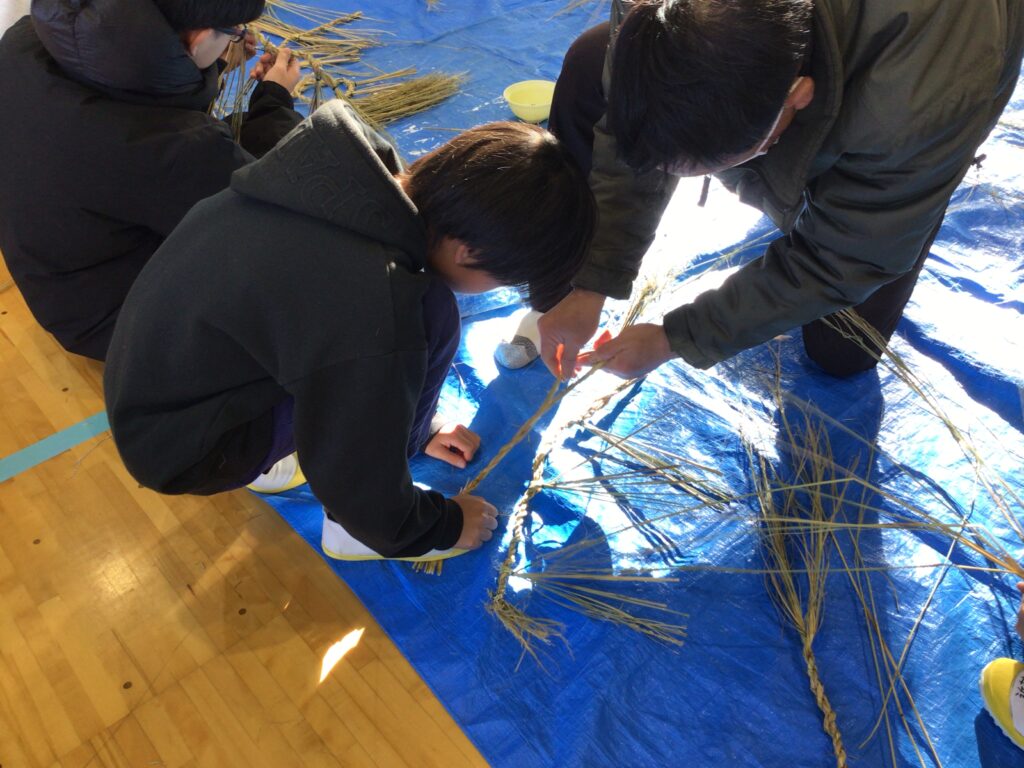 地域の方にご協力いただき、5年生がしめ縄作りをおこないました。