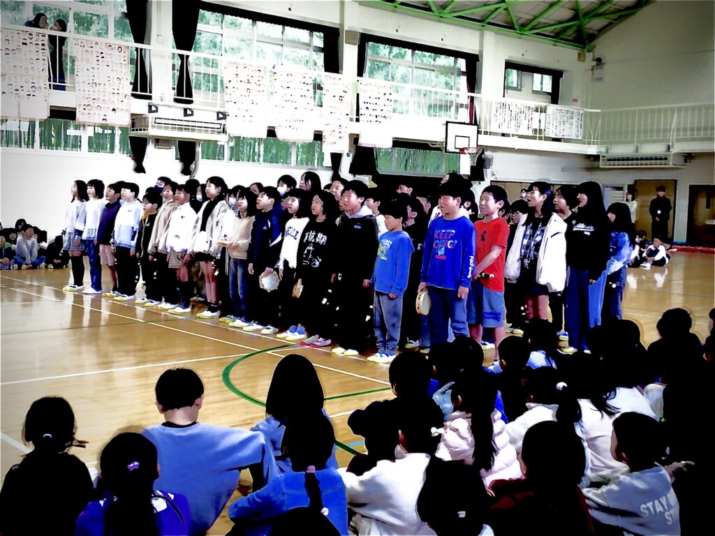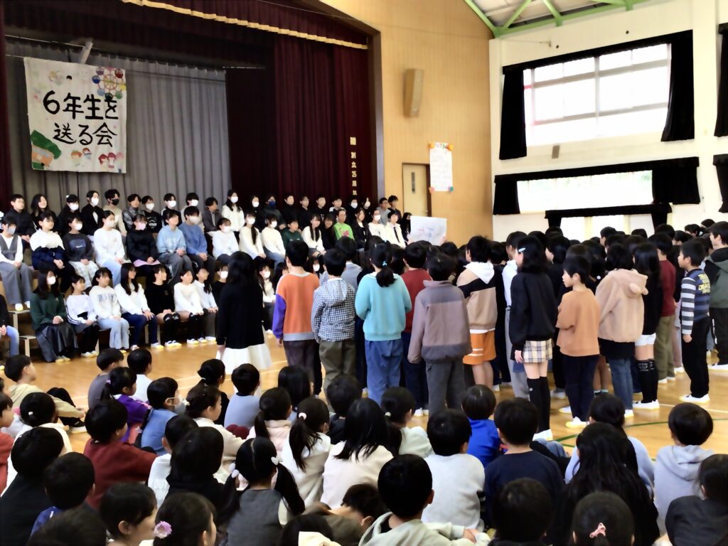 2月の最終日。体育館で6年生を送る会がありました。