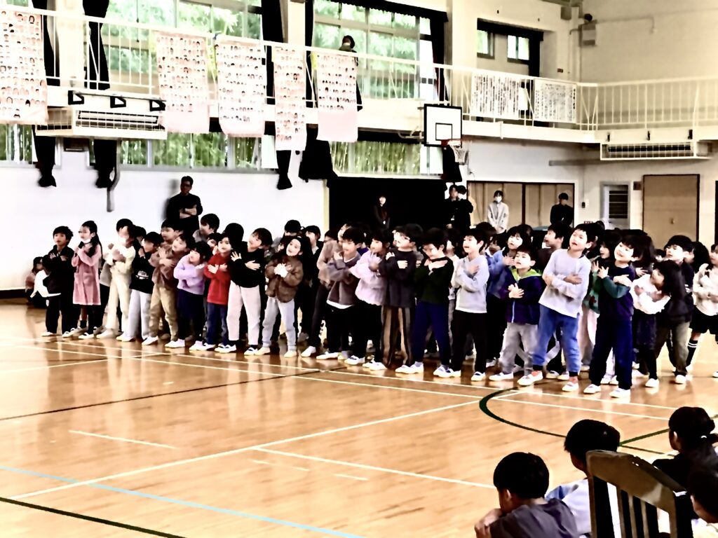 各学年からのGIFTを受け取った6年生から、最後にお返しのGIFTです。この1年間、2向小の最高学年として、がんばる姿を様々な場面で見せてくれました。卒業を控えた6年生からは、下級生へのエールと感謝がたくさん伝わったGIFTでした。