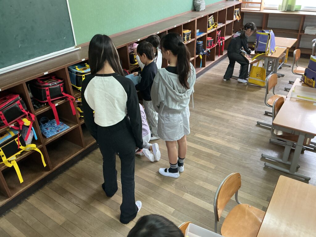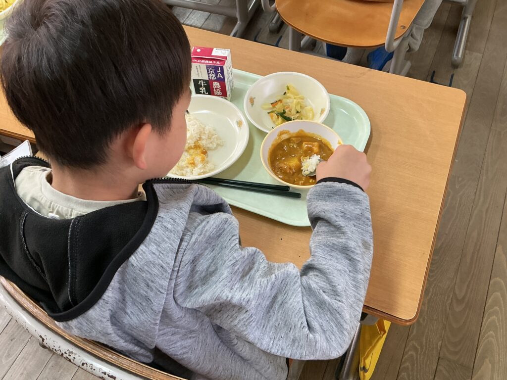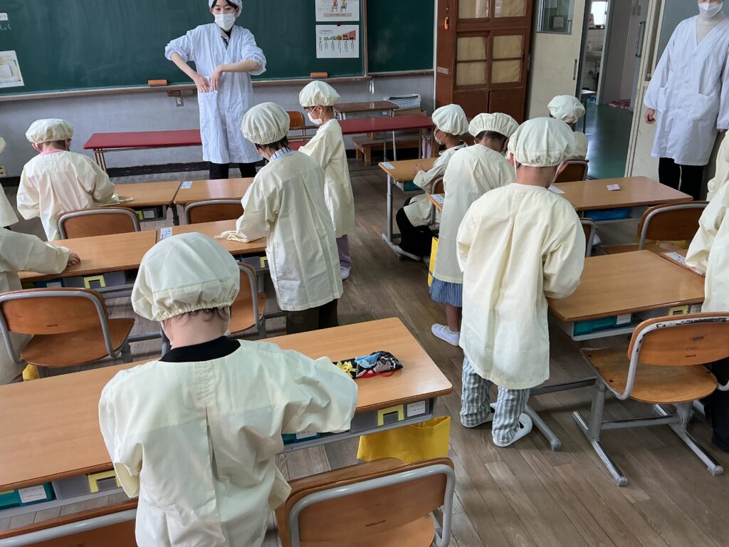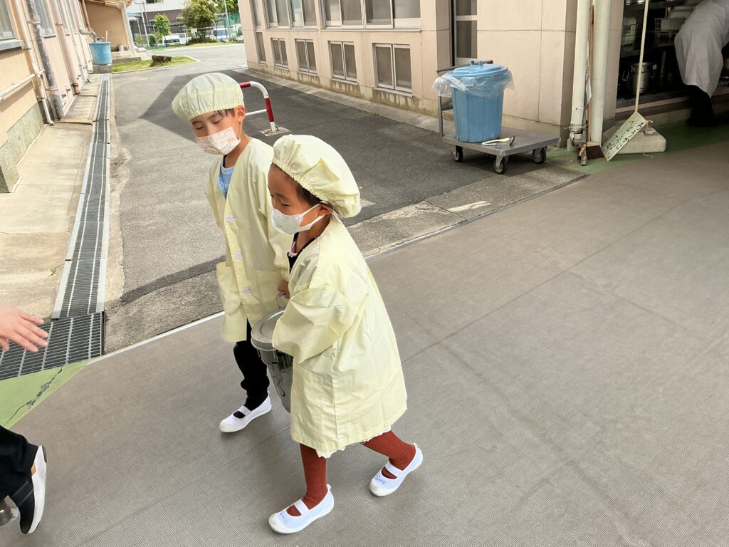 1年生 入学して1週間 令和8年度 2026.04.20 4月9日に入学した78名の1年生。 朝は6年生が準備のお手伝いに来てくれています。 17日からは給食が始まりました。 初めての給食はカレーライスです。 給食当番はエプロンに着替えます。 髪の毛が帽子から出ないようにしっかりかぶります。 給食室の前に来たら、調理員さんにごあいさつ。 「おいしい給食 いただきます!」 2人で協力して食器やおかずを運びます。落とさないように慎重に・・・。 初めての給食、どうだったかな。 Post Views: 151