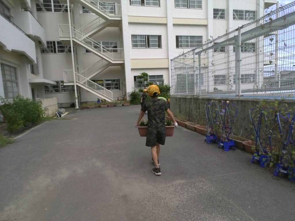 最後に、プランターを所定の場所へ運び、水やりをして活動を終えました。