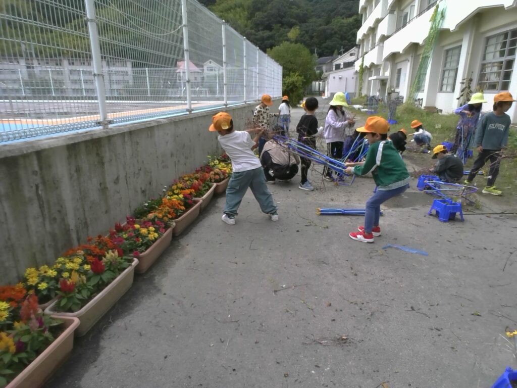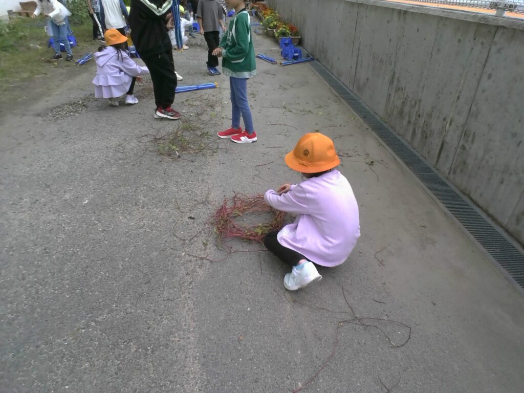 しっかり絡まったつるに苦戦しながらも、みんな力を合わせてがんばりました。