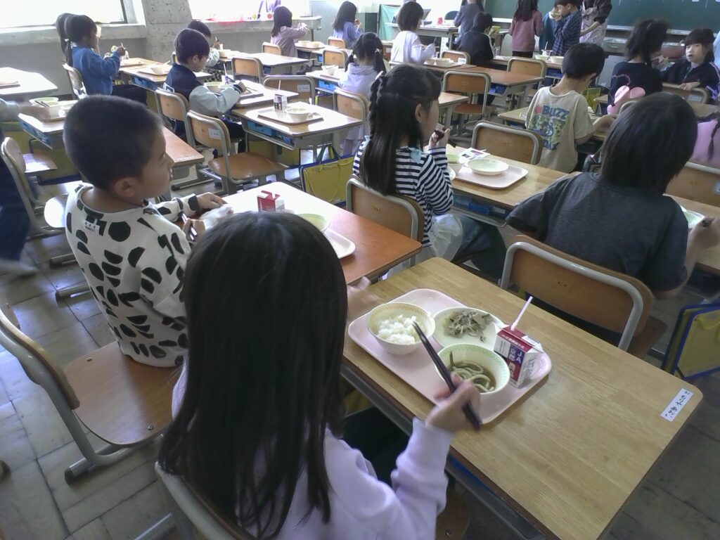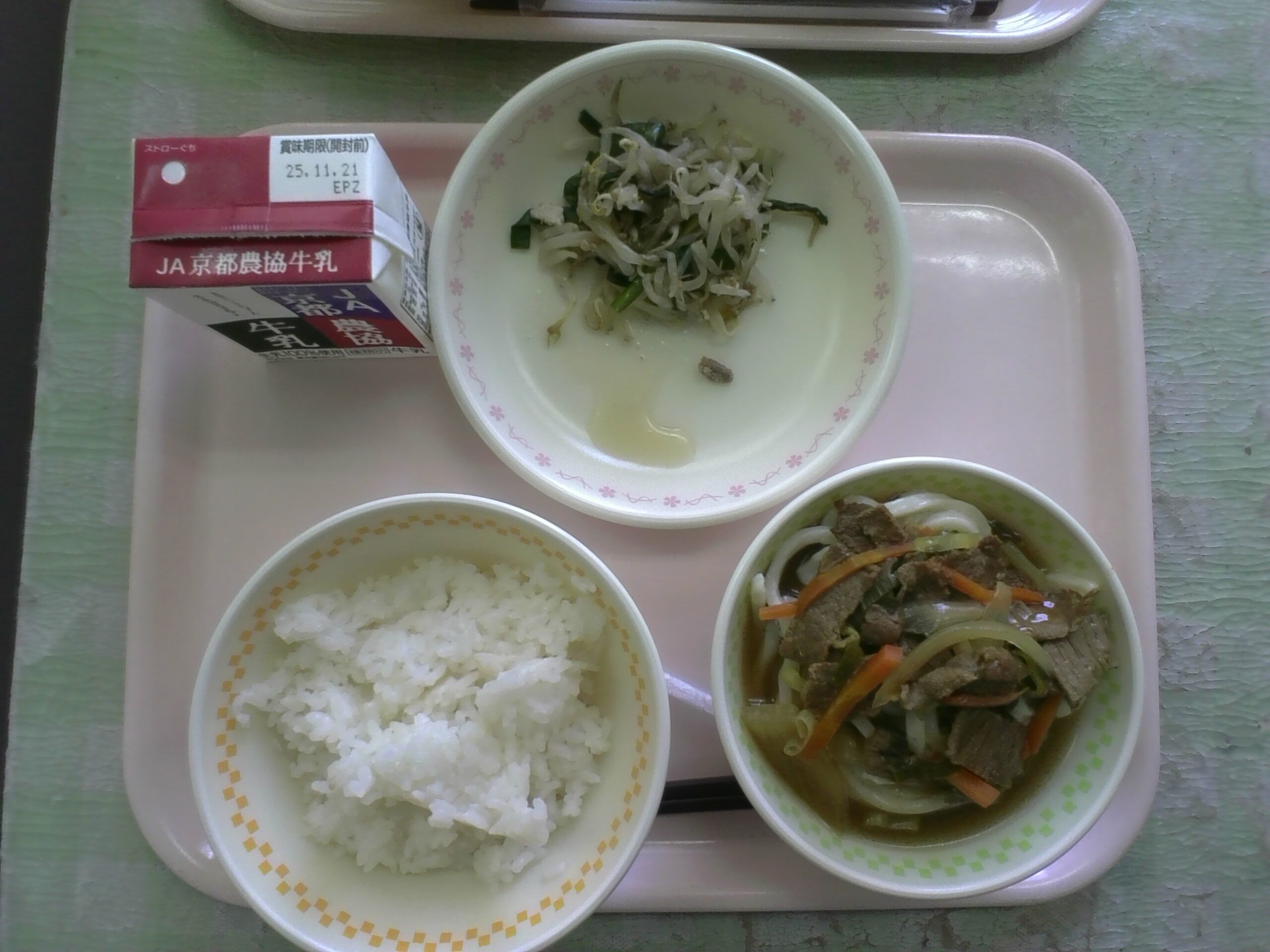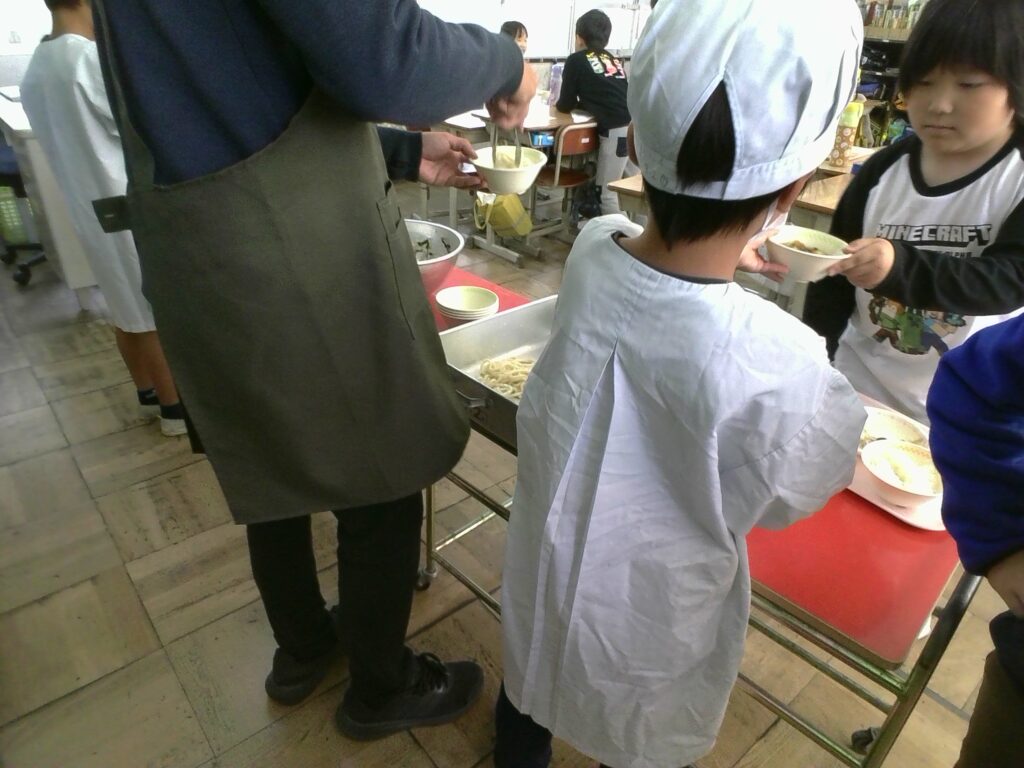 今日の給食は、ごはん、牛乳、ぶたもやし炒め、そして、なんと、カレーうどんでした。スパゲッティ給食は月に1回ほど登場しますが、うどん給食はなんと10年以上ぶり!