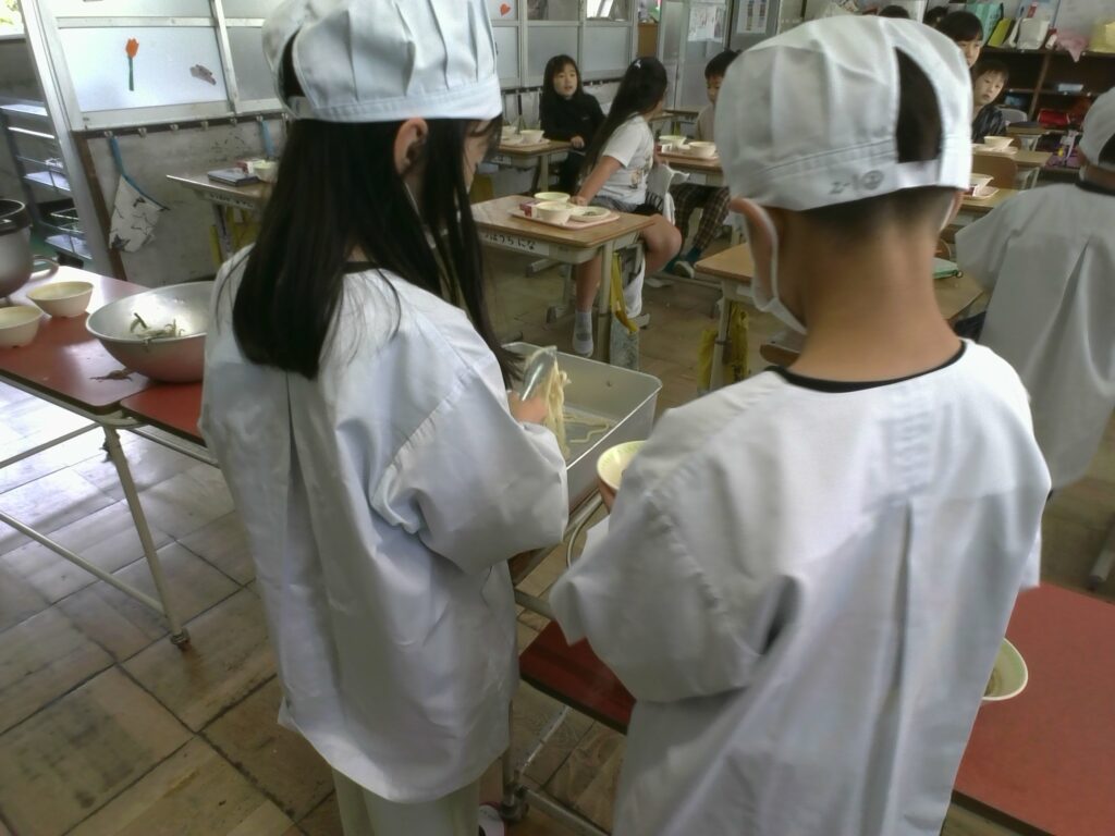 うどんが少しくっついて、配膳が大変そうでしたが、みんなで協力してなんとか全員分を配ることができました。