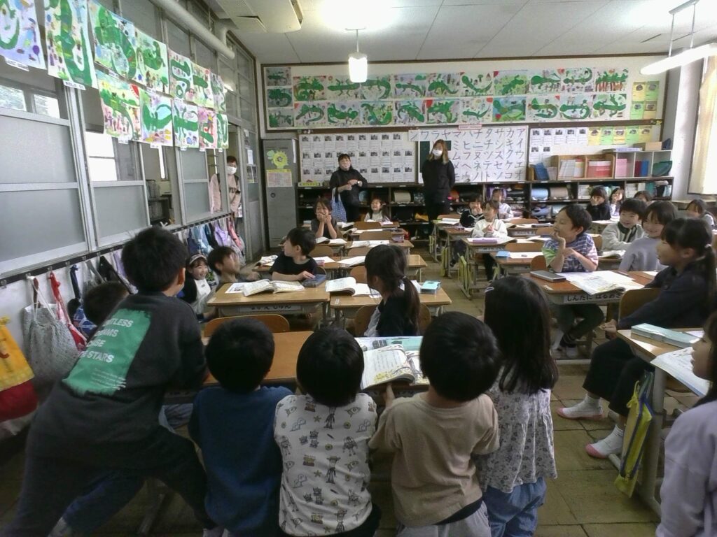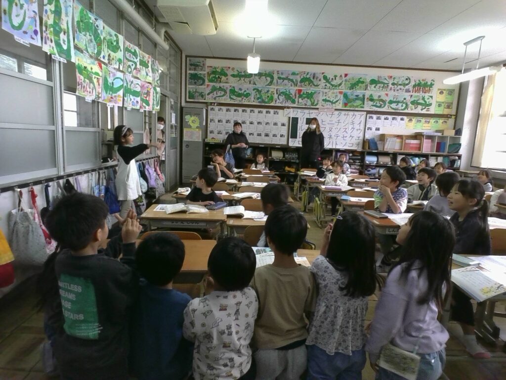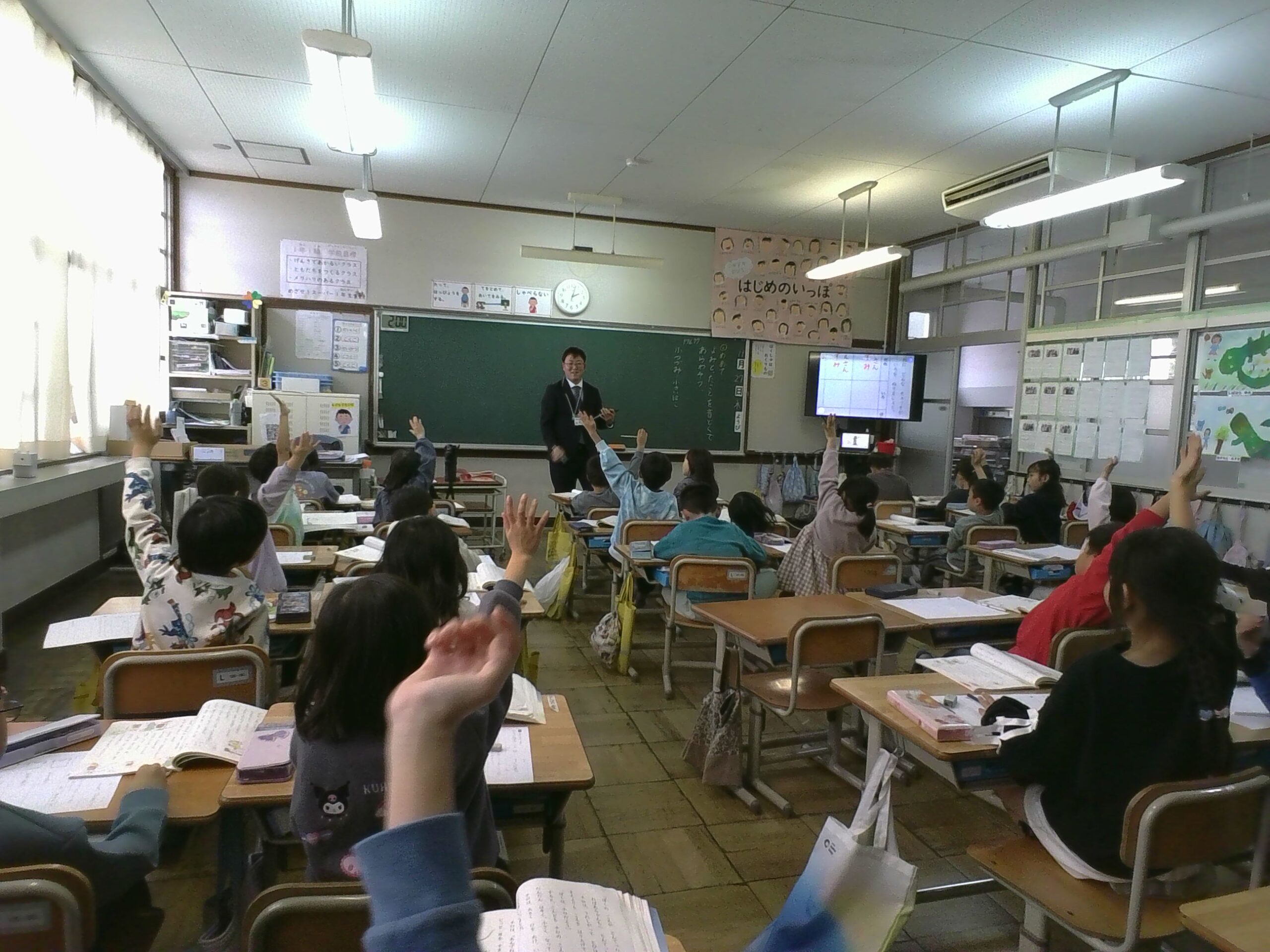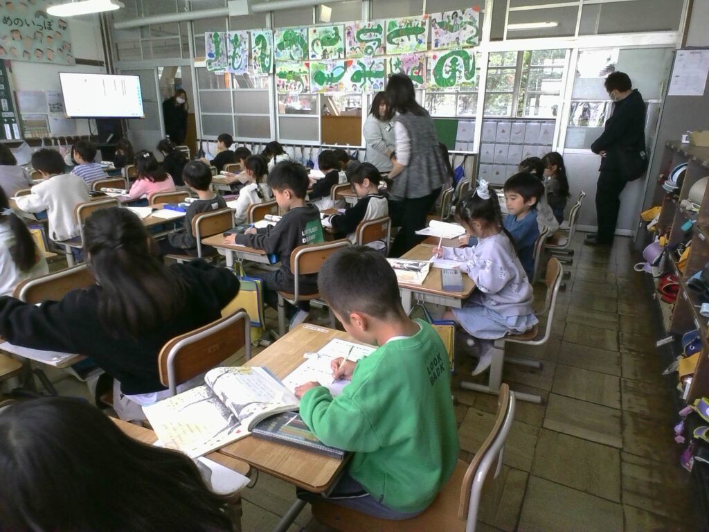 みどりの丘幼稚園、さくらの里保育園、第2保育所の先生たちが、1年生の授業を見に来てくれました🎉