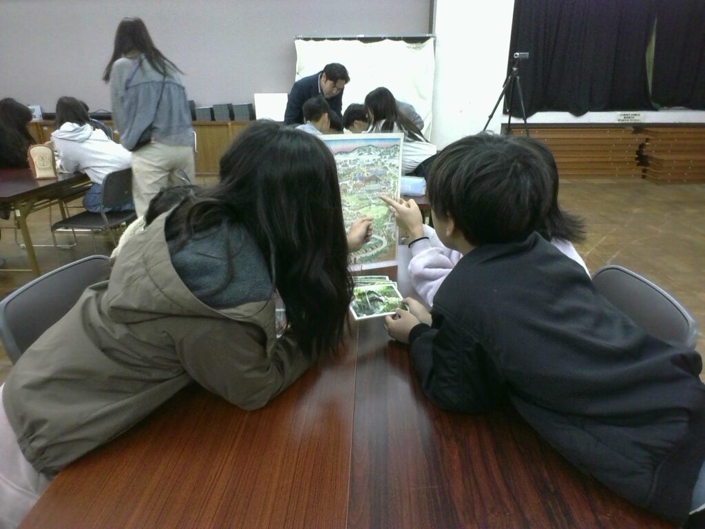 授業では、加賀氏が描いた「大山崎山荘の絵」を手がかりに、写真と見比べながら実際の場所を探しました。