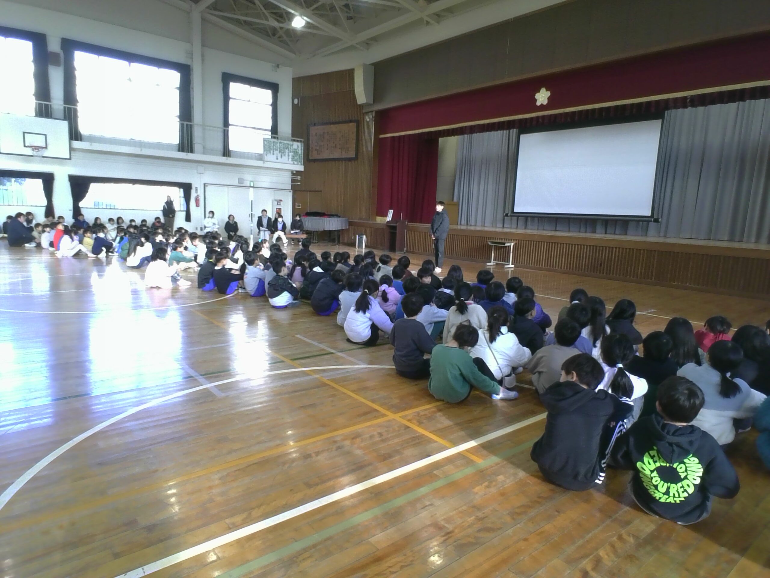 はじめに、全校児童で元気よく校歌を歌いました🎵
