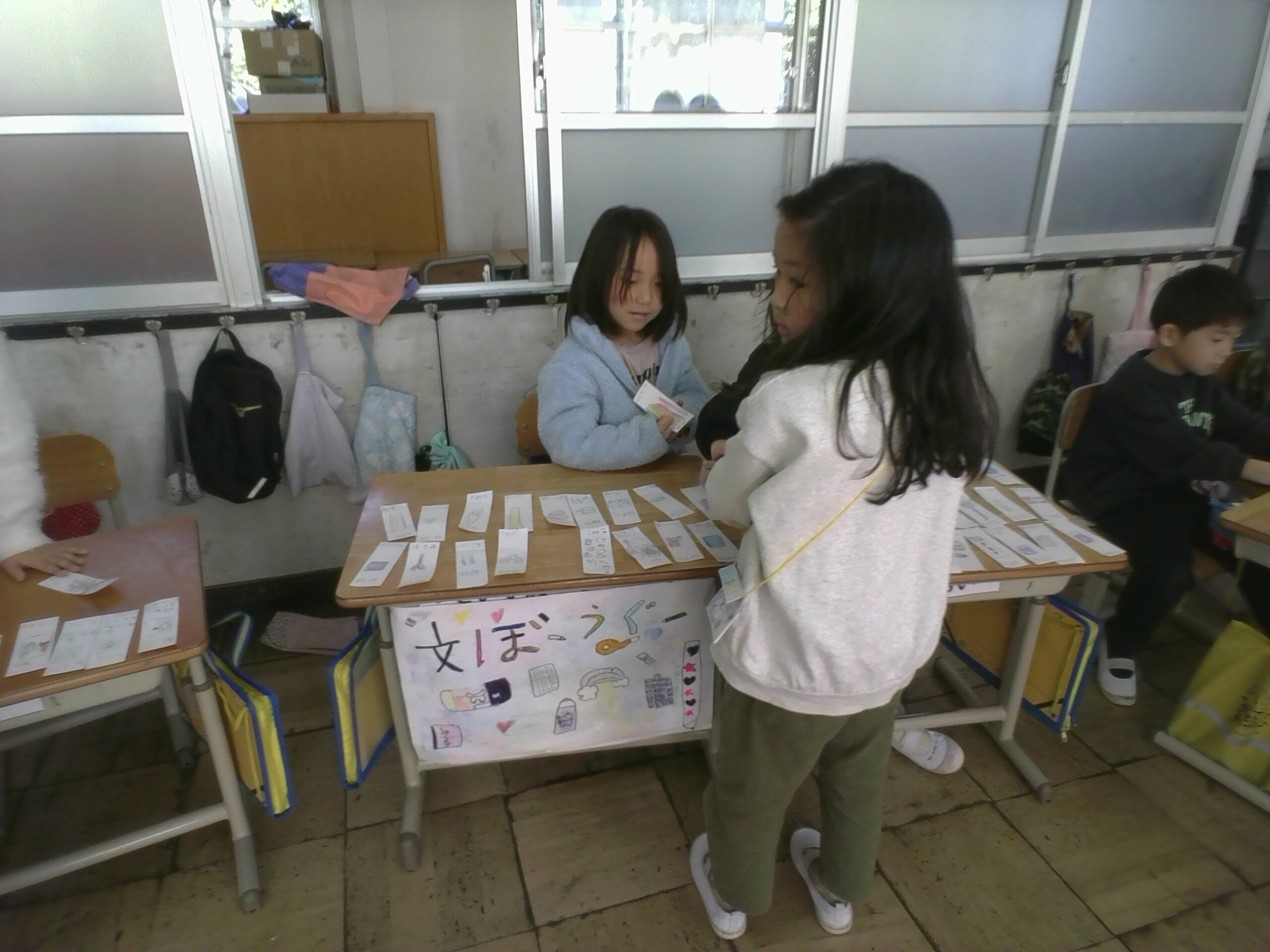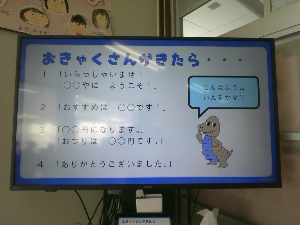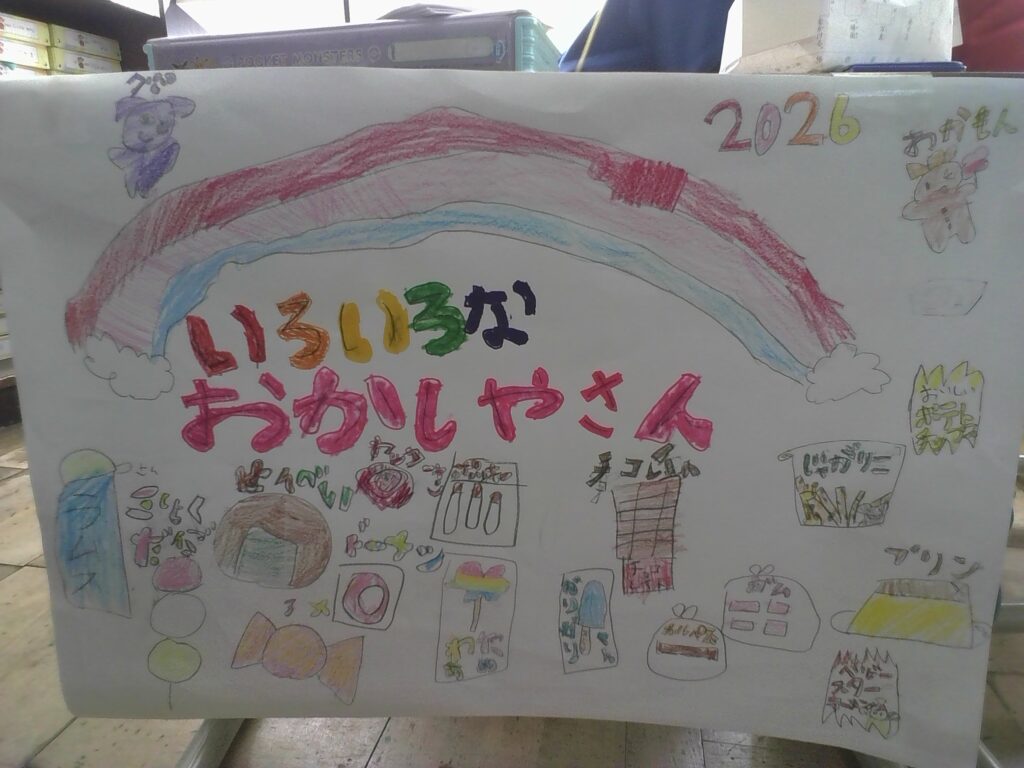 教室には、パン屋さんや文房具屋さんなど、いろいろなお店が開店しました。