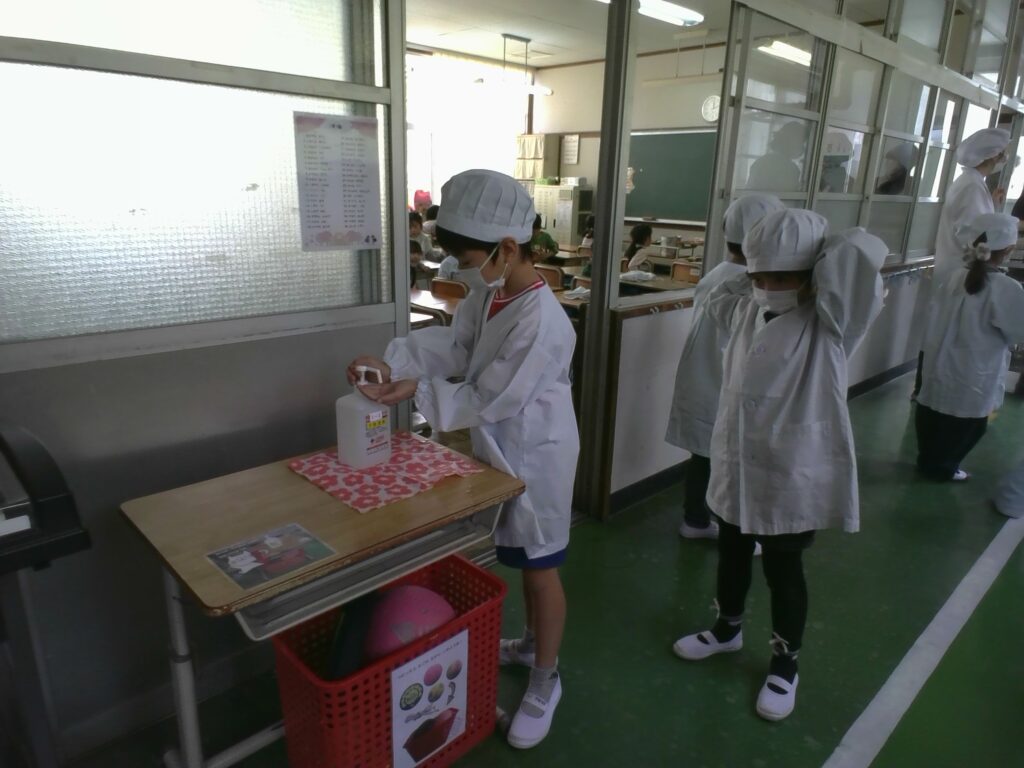給食前は、手洗い・消毒もばっちり!