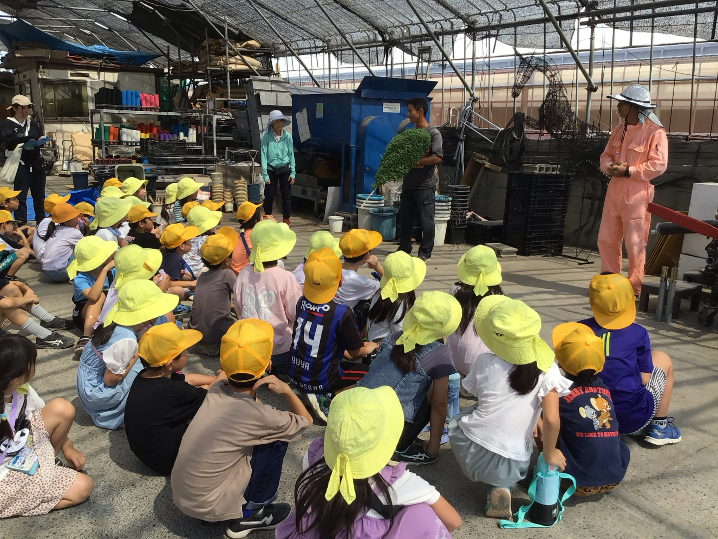 9月19日(金)に3年生が、向日市の特産品である懸崖菊(けんがいぎく)を生産しておられる清水園芸さんに見学に行きました。また、懸崖菊をアレンジして動物などを形作る「菊のトピアリー」を作っておられる様子も見せていただきました。子どもたちは、ハウスの中を見学させていただきながら、説明に真剣に聞き入っていました。「トピアリーはどんな風に作るのですか」「懸崖菊が育つまでどれくらいかかりますか」「朝は何時から働いているのですか」など、たくさんの質問をしていました。