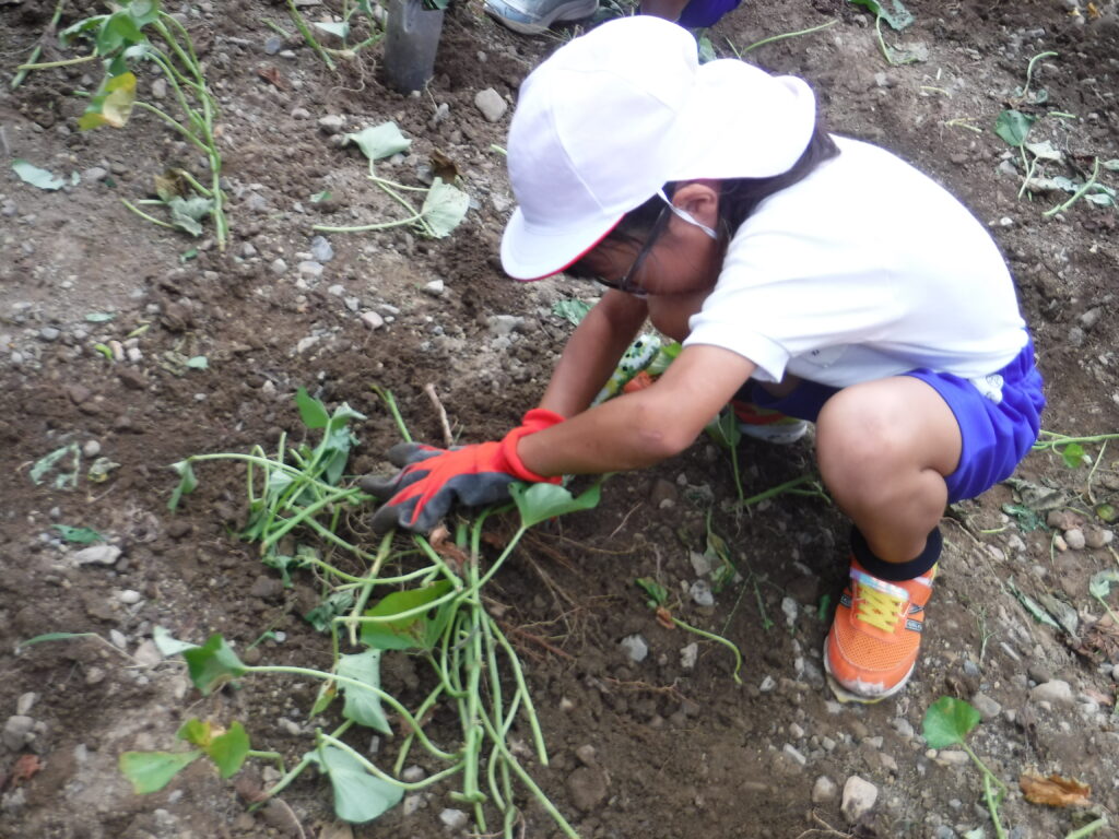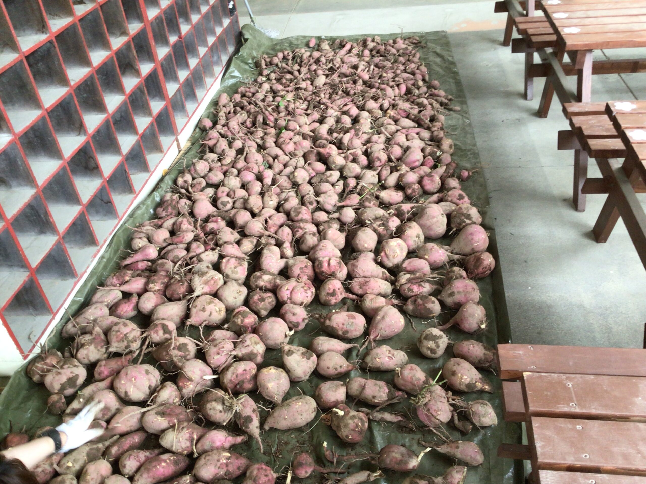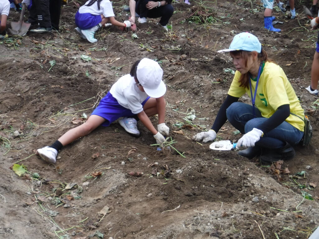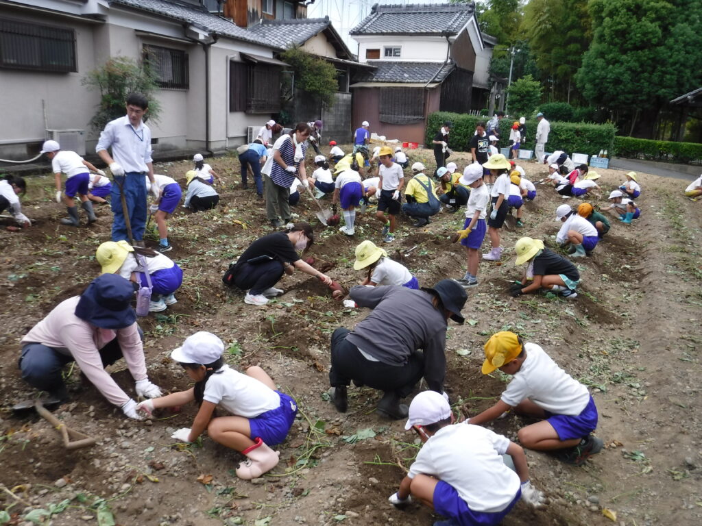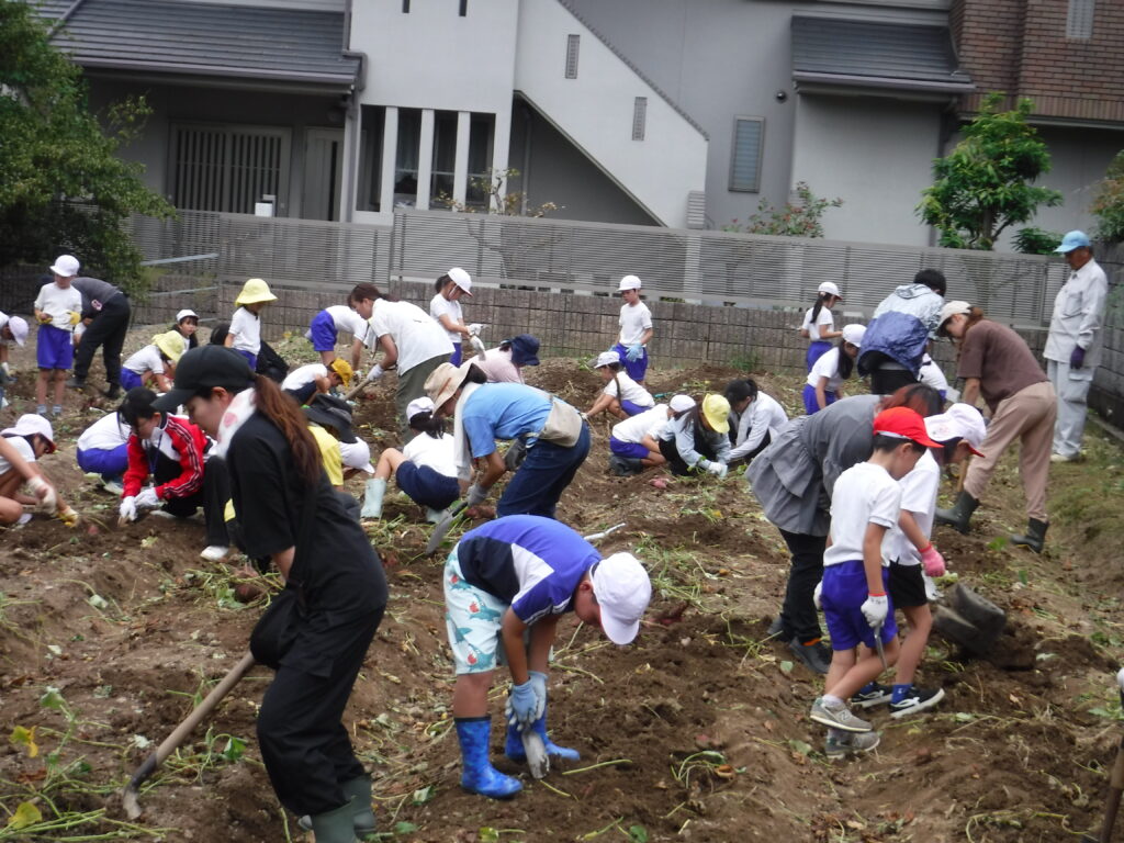 9月25日(木) 少しずつ秋の気配が感じられる頃になりました。「収穫の秋」ということで、2年生がさつまいも掘りを体験しました。地域の方にお借りした畑で、さつまいもの苗の植え付けをしたのが5月。どんな芋が出てくるかドキドキしながら掘りおこしてみると、大小さまざまな形の芋がどっさり出てきて子どもたちは大喜びでした。このさつまいも栽培の栽培・収穫は、「地産地消推進体験農園設置事業」の一環として、向日市教育委員会、学校が地域の農家さんにご支援いただきながら実施しています。また、今回の収穫体験は、地域学校協働本部事業の取組にも位置付けていただき、コーディネーターの皆さんの呼びかけで、たくさんの2年生保護者の方々にもお手伝いいただきました。芋の蔓切りの作業も前もってしていただいたので、子どもたちがたくさんの芋を収穫することが出来ました。ご支援・ご協力本当にありがとうございます。今日子どもたちが掘ったさつまいもは、しばらく乾燥させた後、10月の給食メニューに登場する予定です。