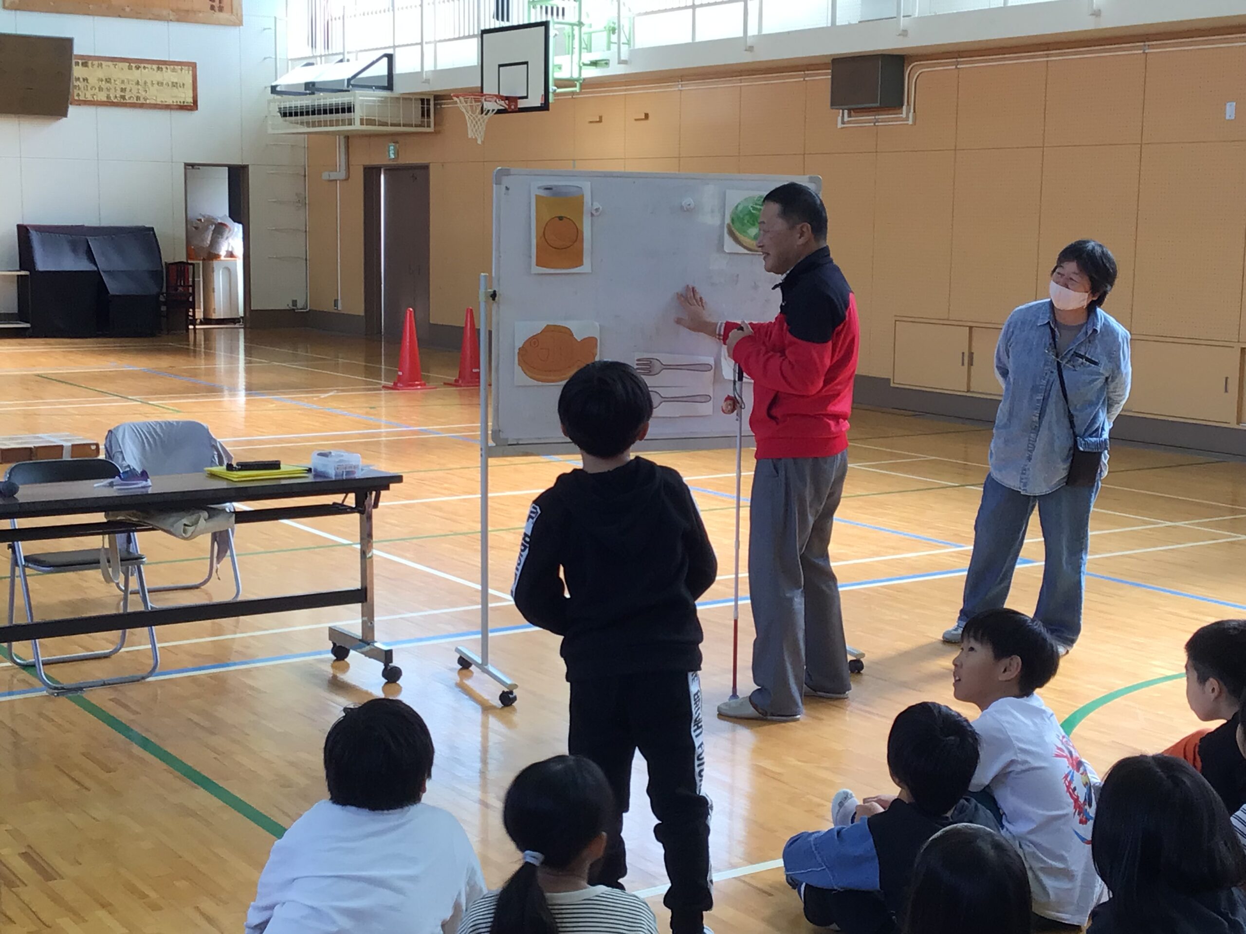 3向小日記10月27日(月)に3年生が「福祉体験学習」を行いました。本校の地域学校協働本部、向日市社会福祉協議会の皆さんにご協力いただき、視覚障がいの方やガイドヘルパーさんのお話を聞いたり、実際に目を閉じて様々な体験活動を行いました。子どもたちは、体験を通して理解を深め、みんなが安心して生活するために、自分たちにできることをしっかりと考え交流していました。