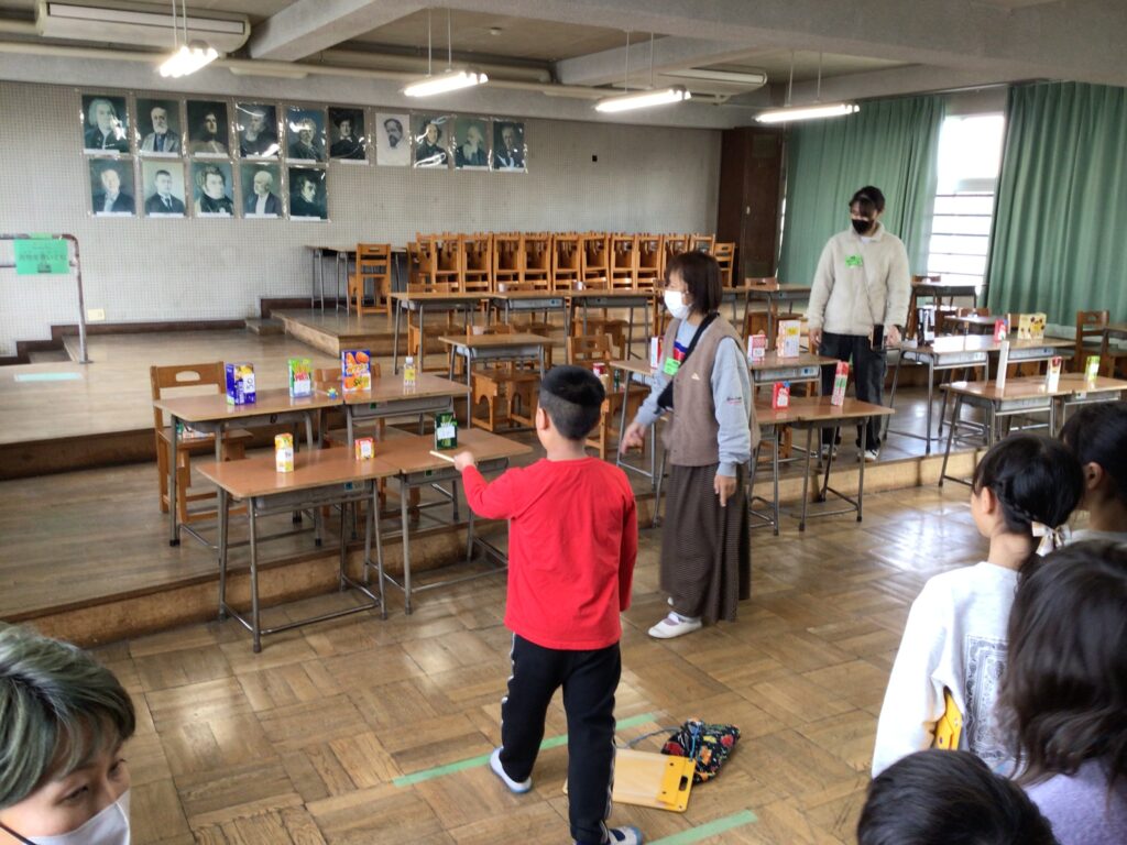11月20日(木)に、3向小恒例「ふるさとまつり」を開催しました。多くの地域やPTAの方々のご協力のもと、子どもたちが楽しめるよう工夫を凝らしたコーナーを企画してくださいました。森本区長寿会の皆さんにはわら細工・昔遊び(福笑い・おじゃみ)、鶏冠井区の皆さんには、お米のお菓子(ポン菓子)、PTA本部、各委員会の皆さんからは、ペットボールテーブルクロス引き、カローリング、キッズホッケー、射的、謎解きラリー、じゃんけん大会など、楽しいコーナーをたくさん用意してくださいました。