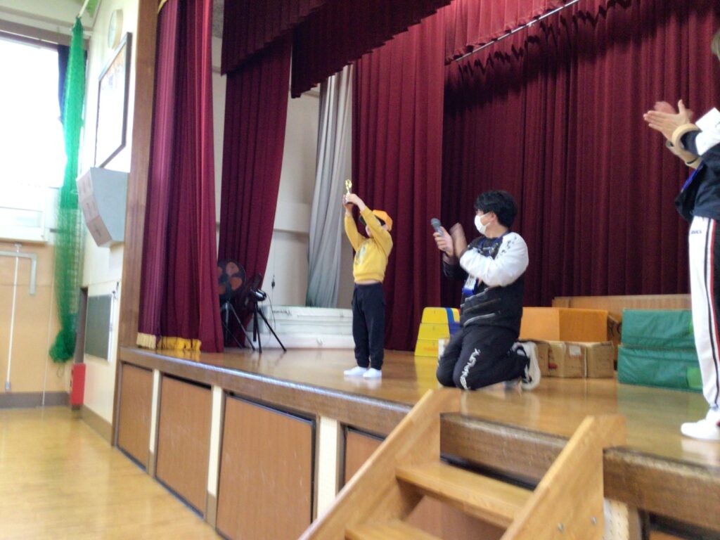 PTA本部のみなさんによる「全員じゃんけん大会!」優勝者にトルフィーが渡されました!