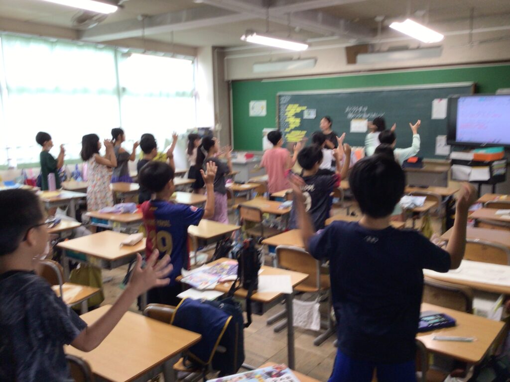 言葉と動きを考え、応援座席リーダーがみんなの動きを考えました。