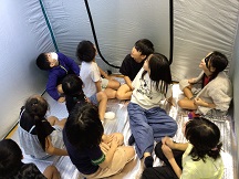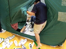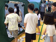 最後は体育館に張られた災害用テントにみんなで順に入ってみました。