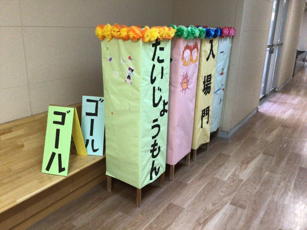 ゲート・掲示係では、入退場門や徒競走のゴールや、運動場に行くまでの道にかける