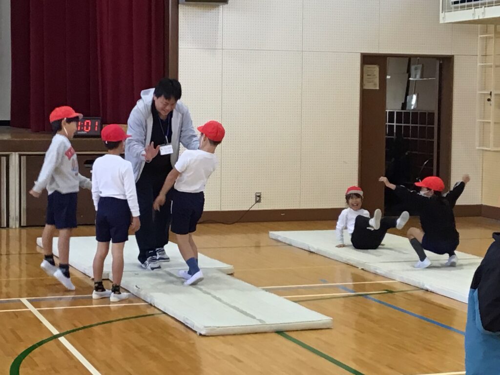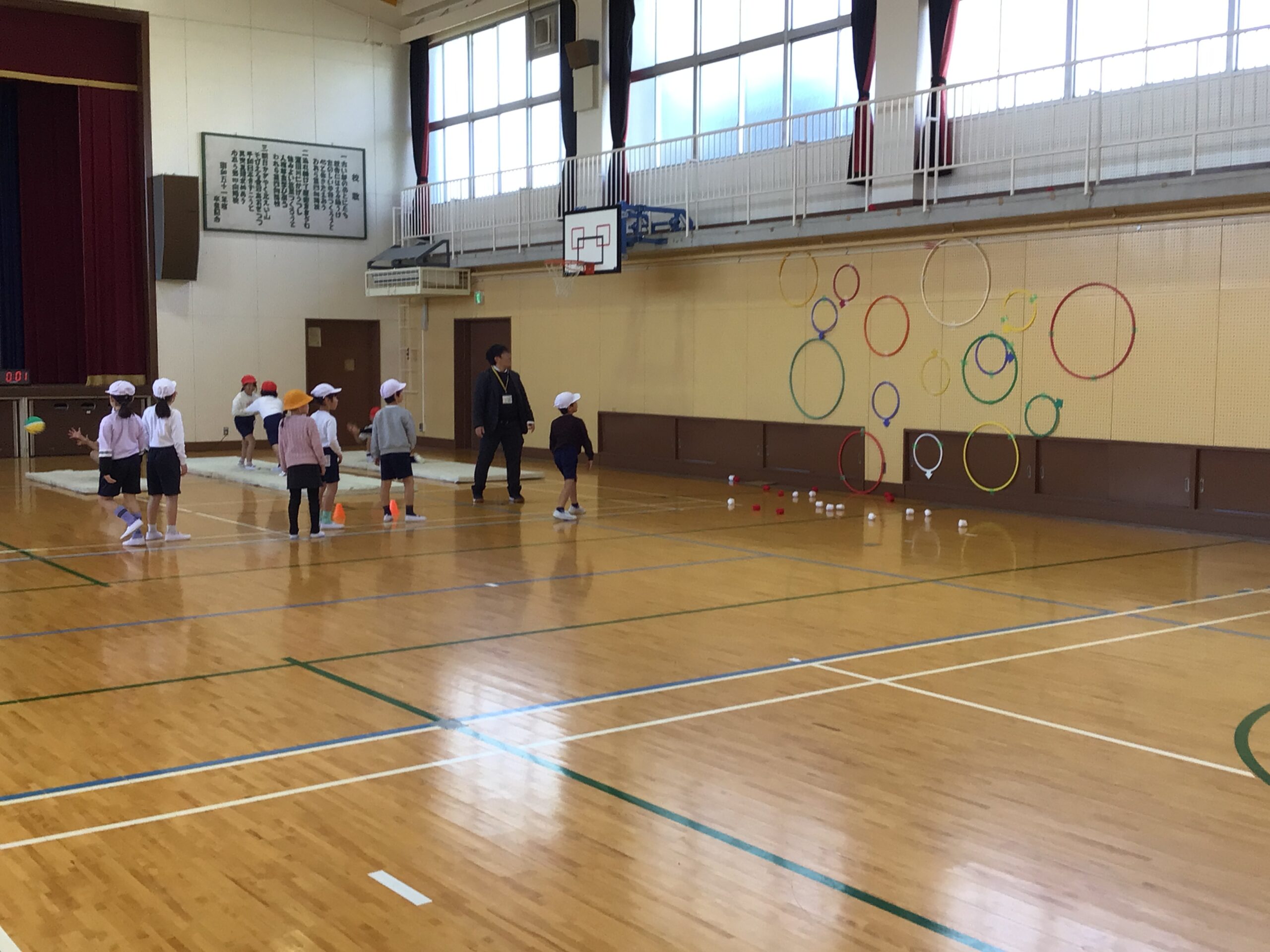 グループに分かれ、走る、跳ぶ、投げる、押す、引く、転がるといった様々な動きにチャレンジしました。