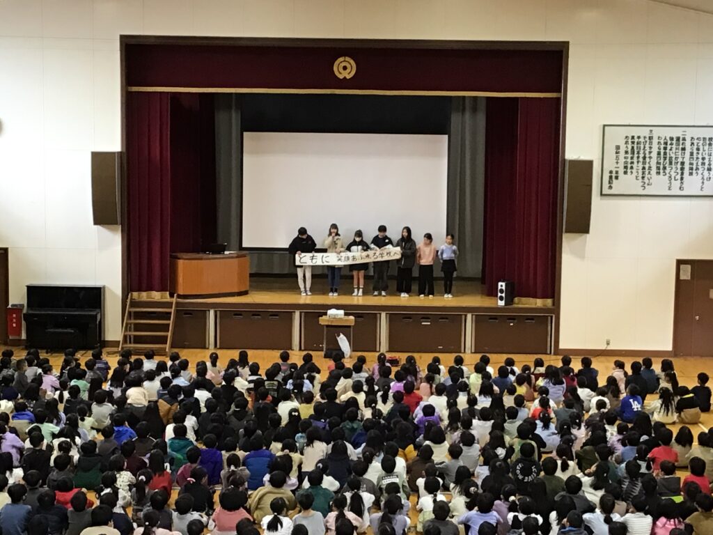 ありました。児童会本部からは、後期児童会のスローガンの確認と、今後の取組のお知らせが