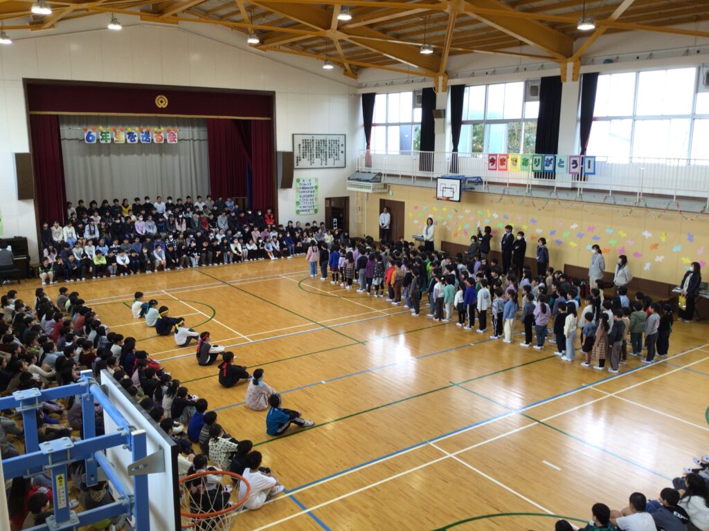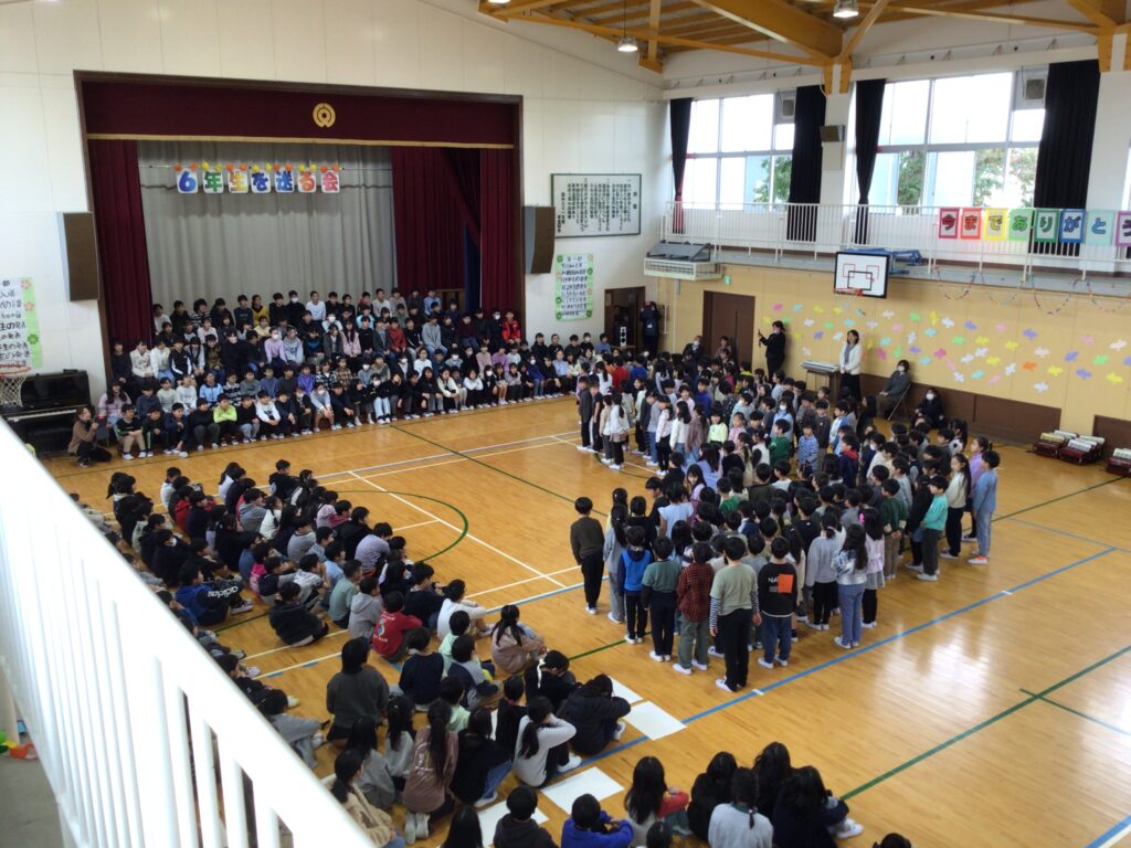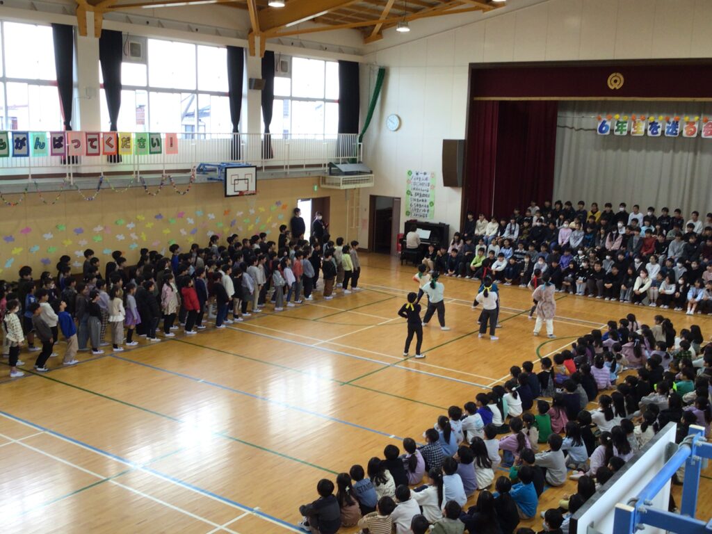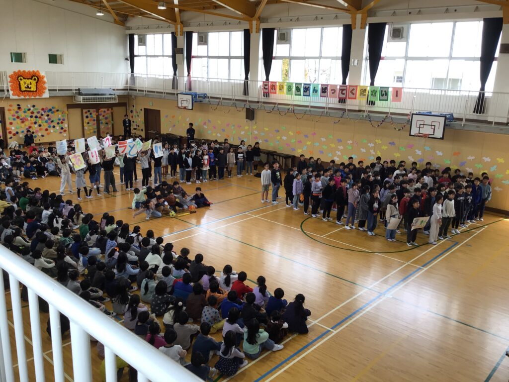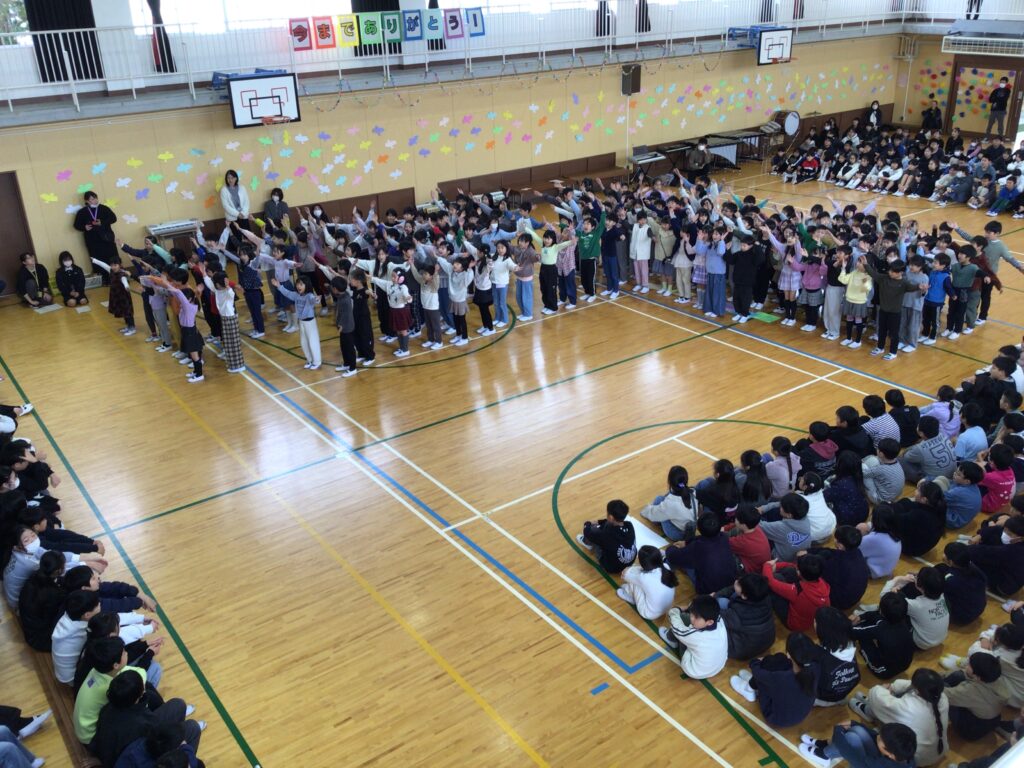 第1部として1・3・5・6年、第2部として2・4・5・6年が体育館に集まり、