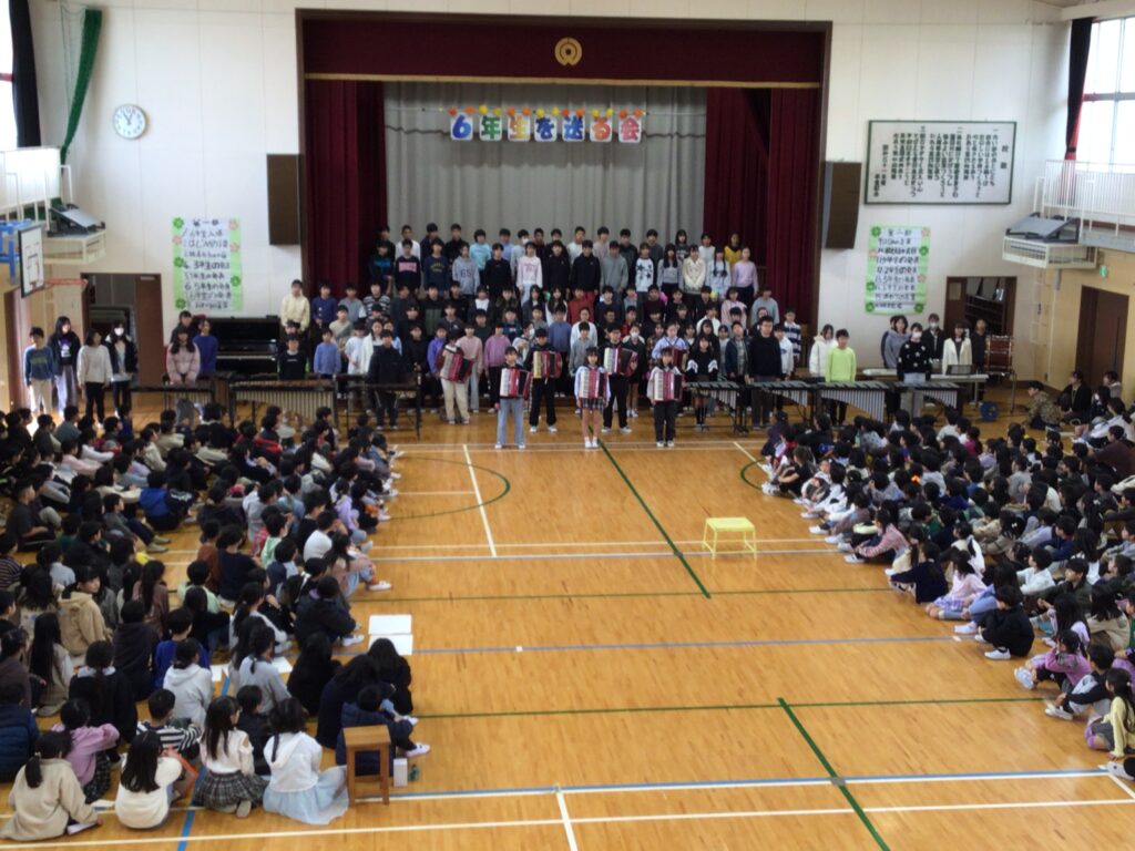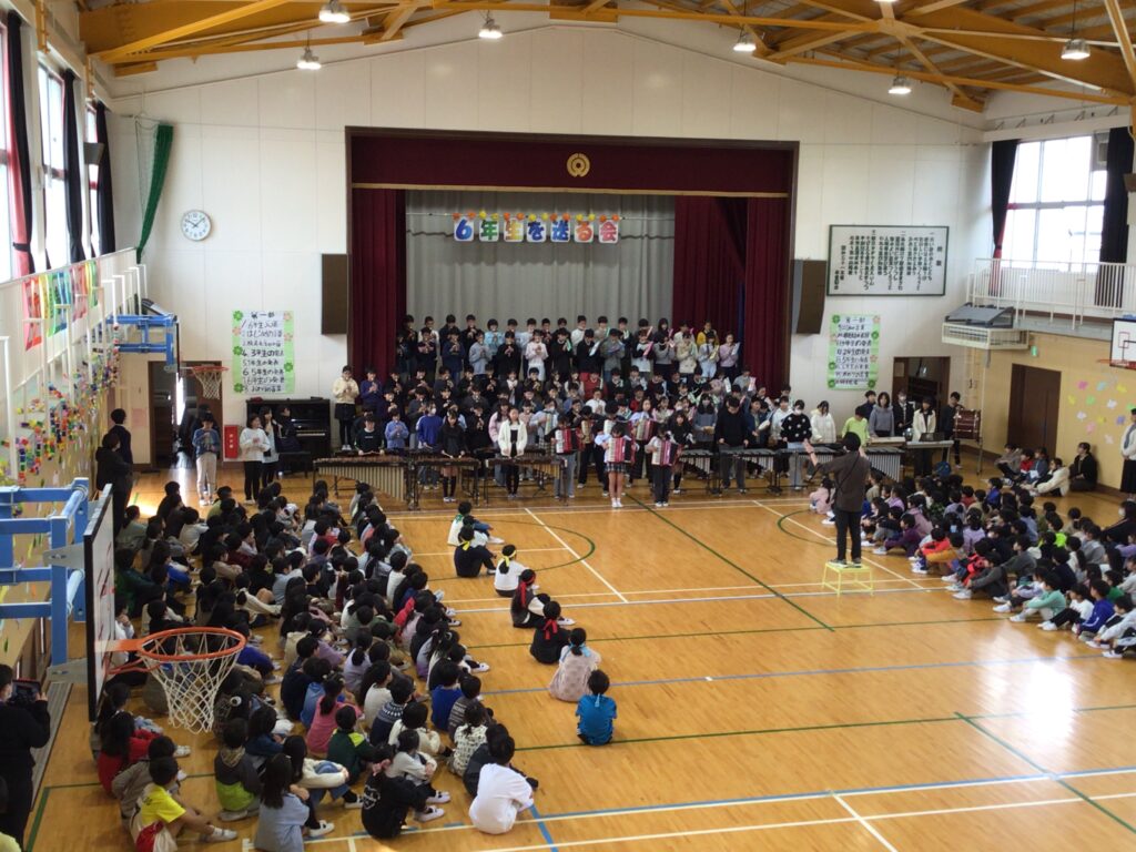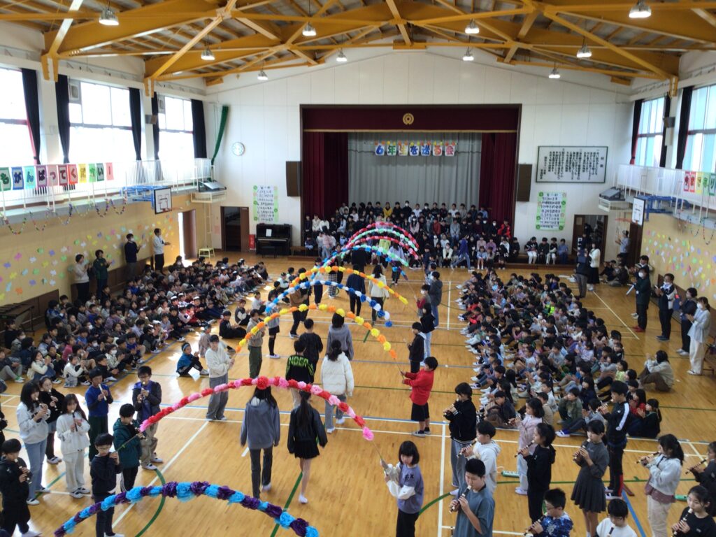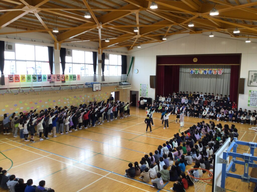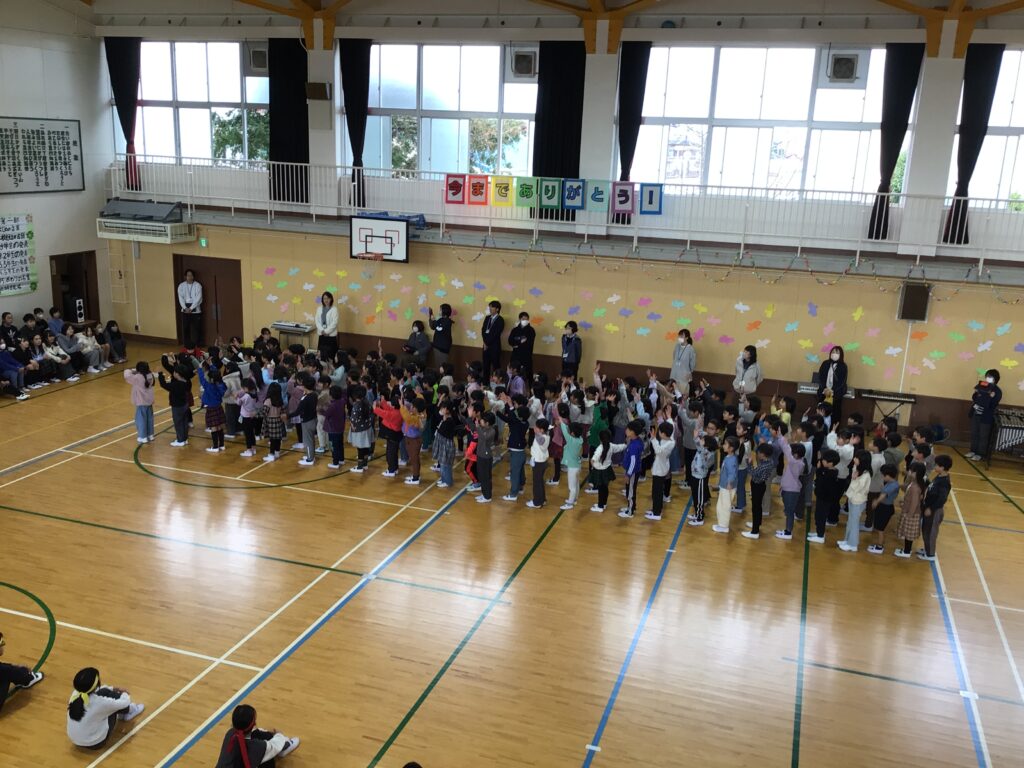 第1部として1・3・5・6年、第2部として2・4・5・6年が体育館に集まり、