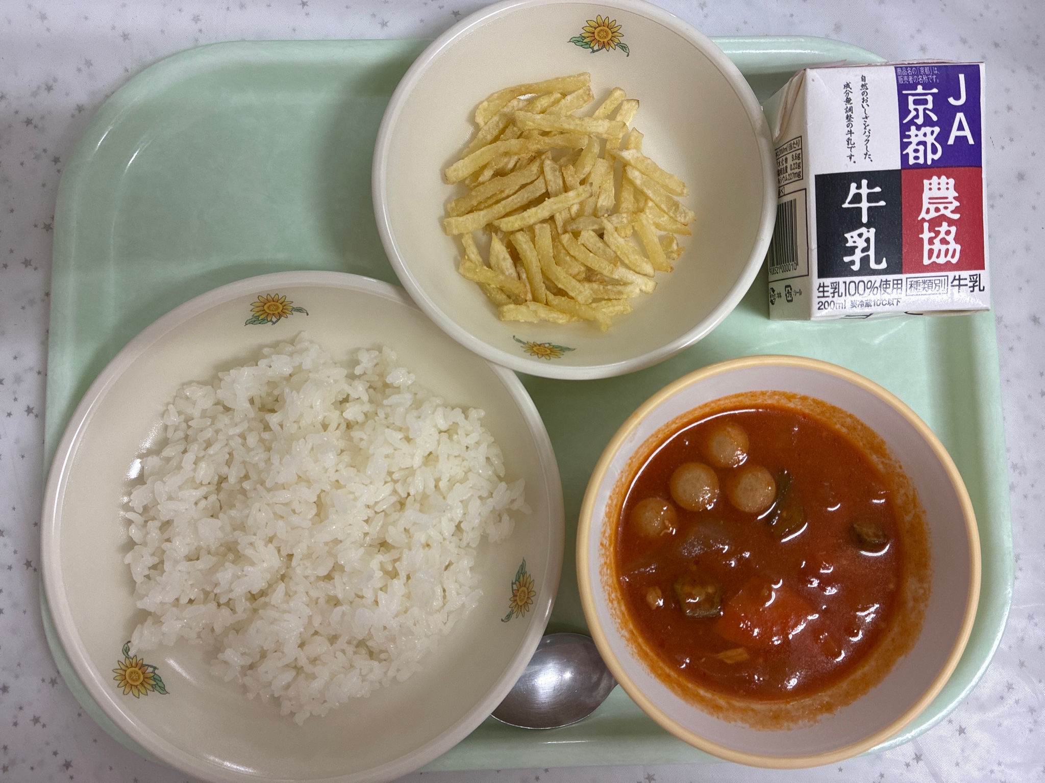 普段の給食のポテトと切り方を変えたので、特別感があり、カリカリポテトを味わっていました。
