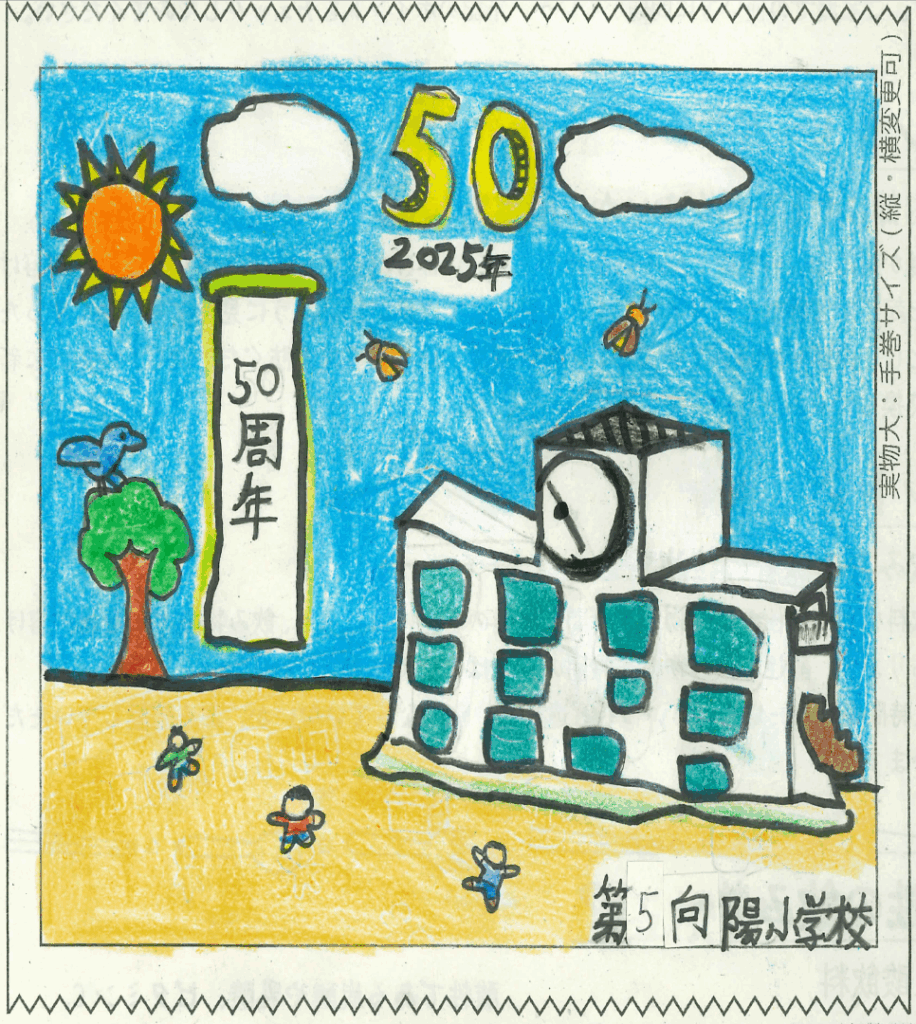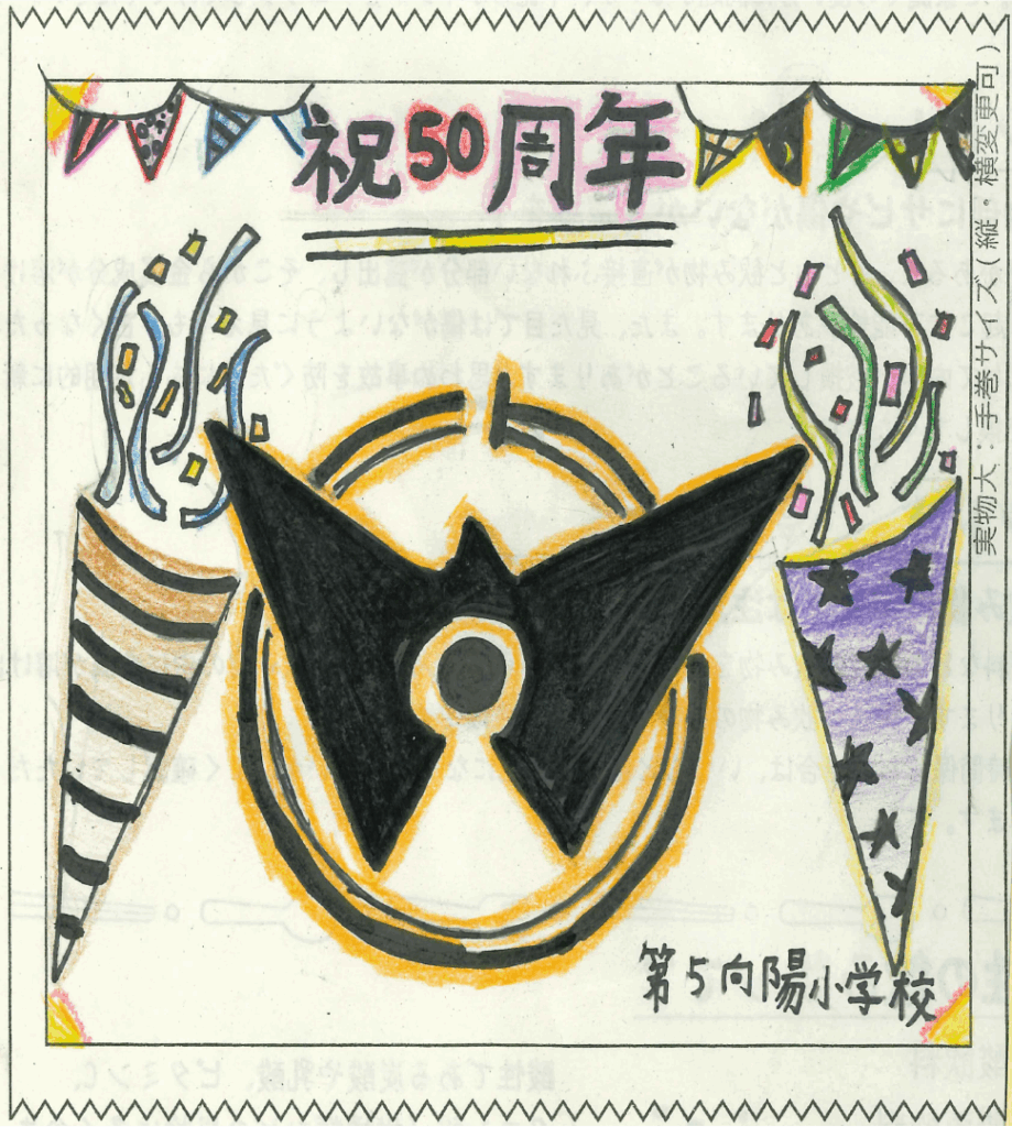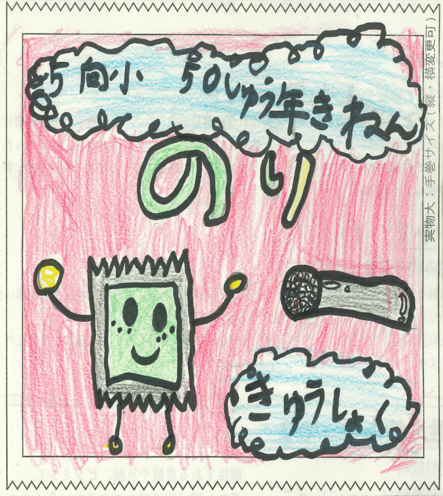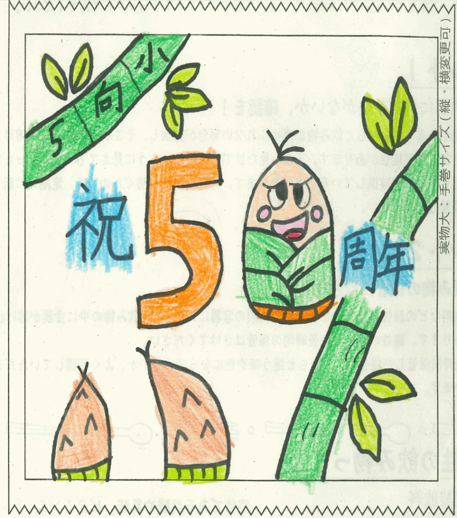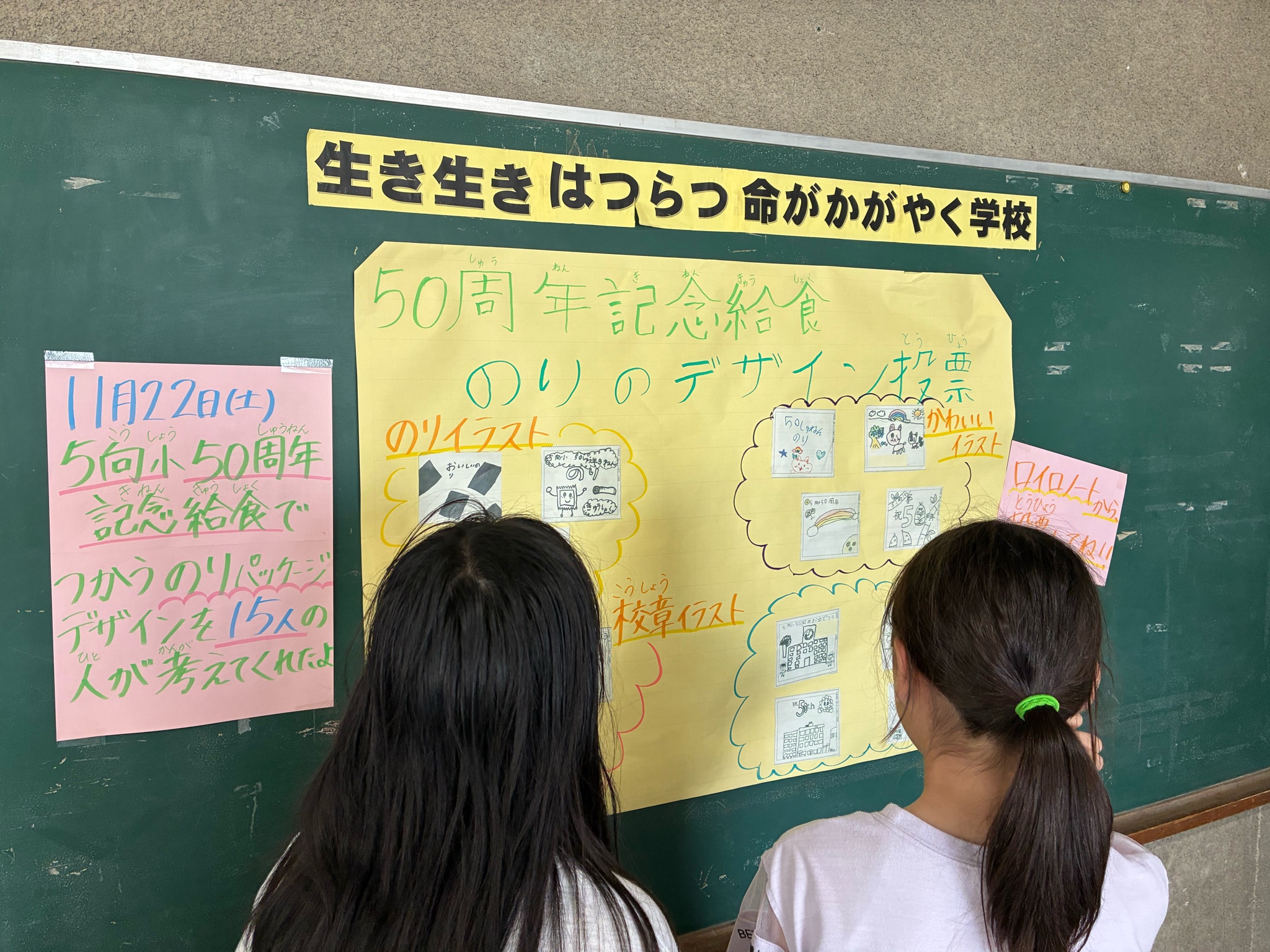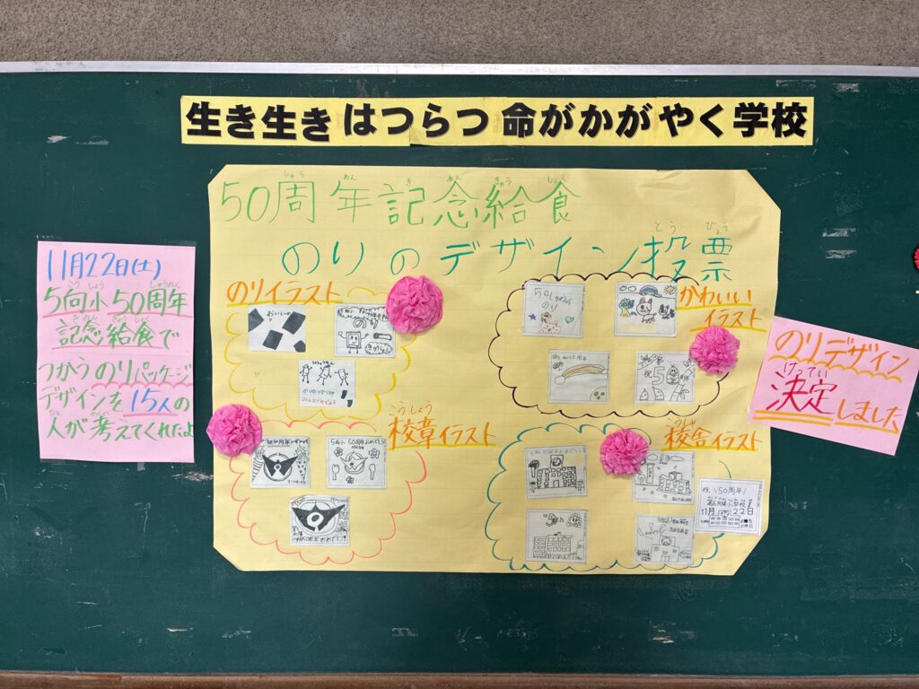 11月22日の5向小50周年記念行事での給食で提供する、手巻きのりの包装のデザインを募集したところ、15人の人が提出をしてくれました。