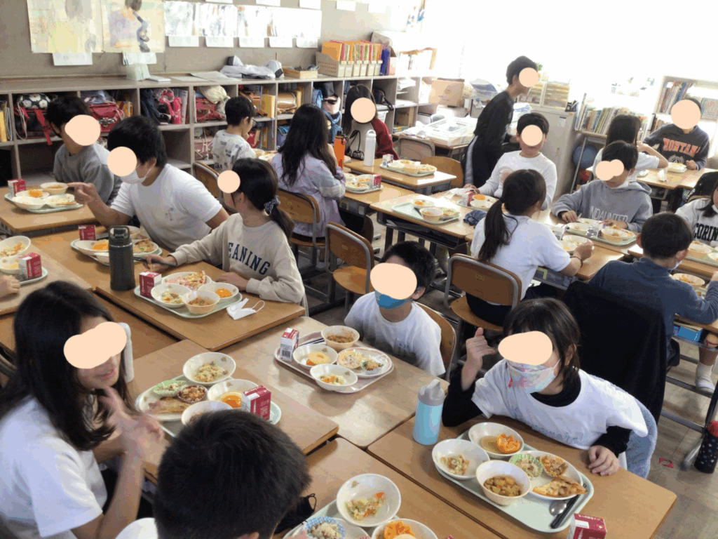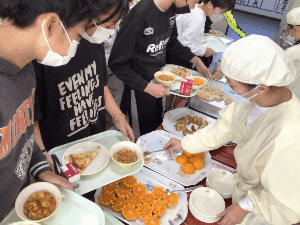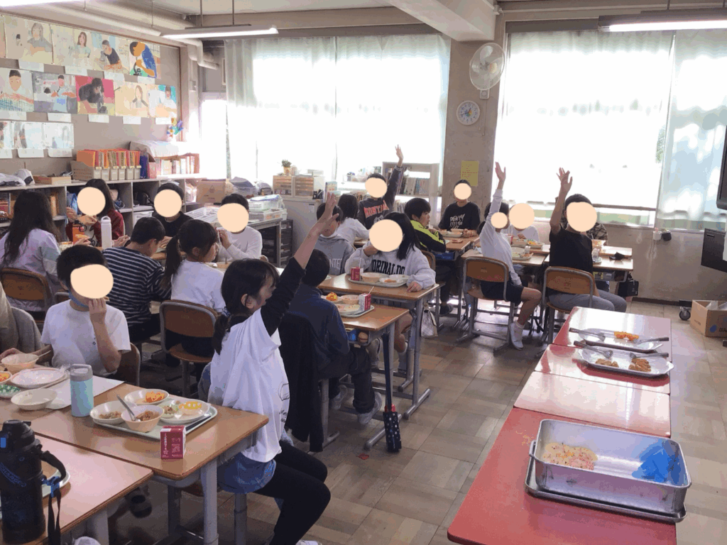 「おかわりほしい人~!」の先生の声で勢いよくみんなの手が上がっていました。