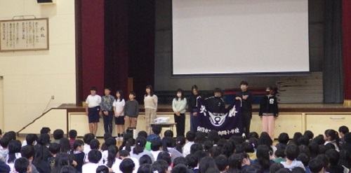 児童会本部は、前期と後期の引き継ぎを行いました。