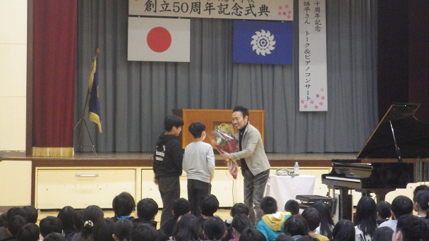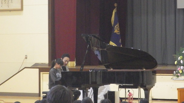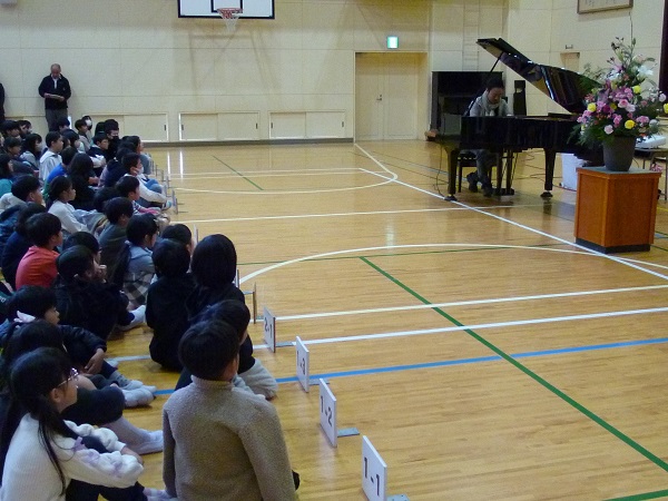 午後からは、西川悟平さんのピアノコンサートでした。ピアノはもちろんお話しも上手で、子ども達の心をぐっとつかんでおられました。夢を実現するために、口に出すこと、諦めないこと、思い続けることを続けてこられた悟平さんの言葉には説得力がありました。夢をもつ子ども達にとって、悟平さんの言葉はとても刺激になったようでした。