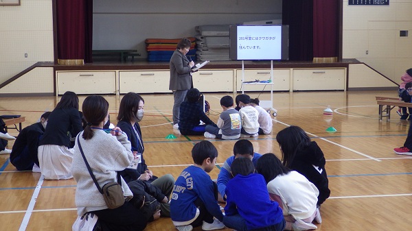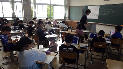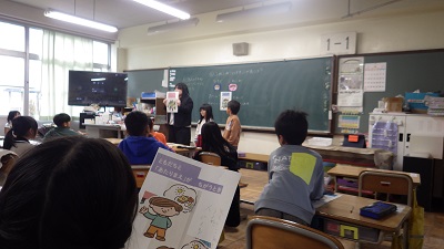 代表の児童が放送で学んだたことを伝え、教室ではモニターを見ながら静かに聞いていました。