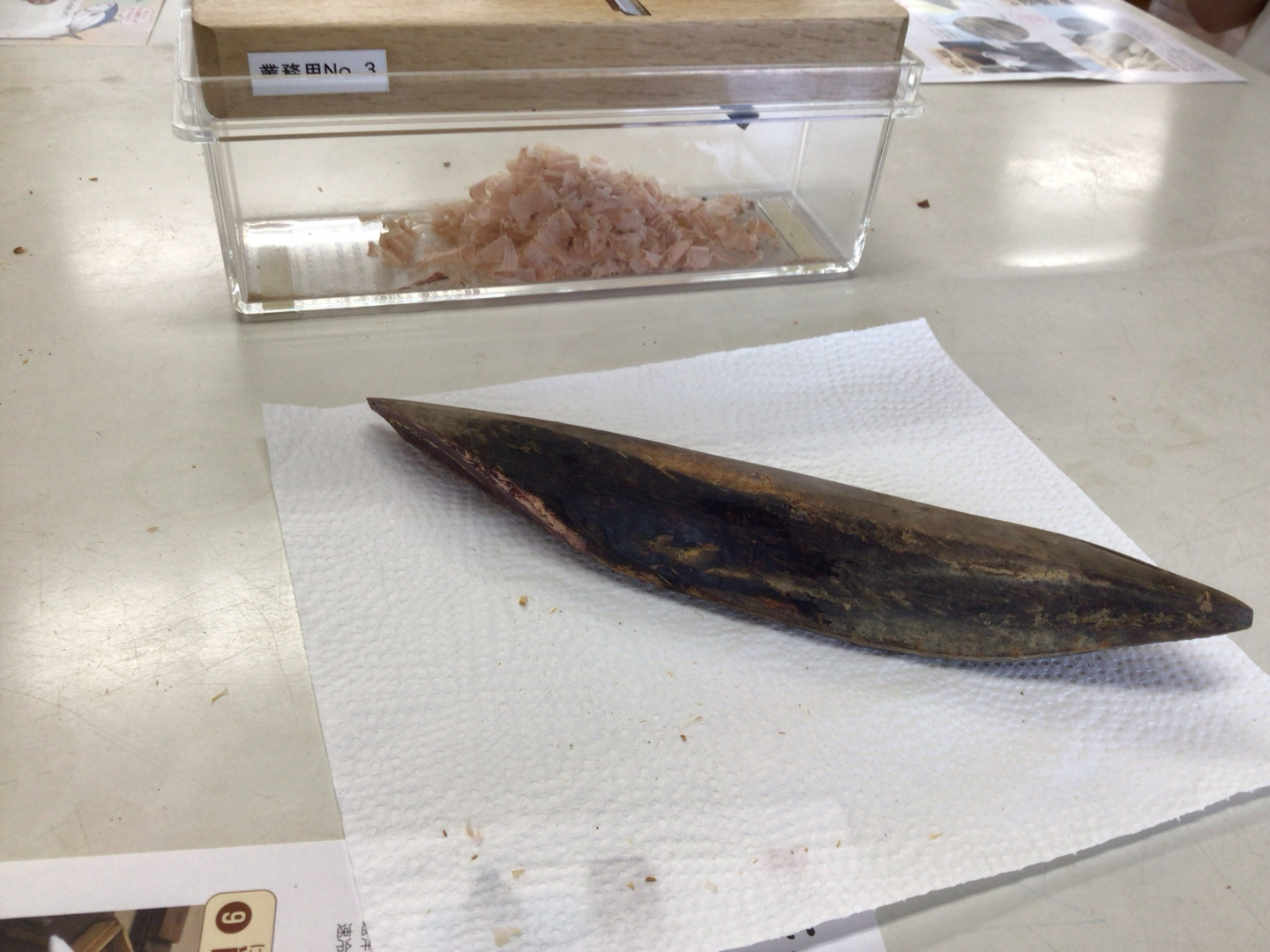 また、本枯鰹節を自分で削る体験では、鰹節の固さを体感し、削り立ての鰹節の香りの良さやおいしさに感動!