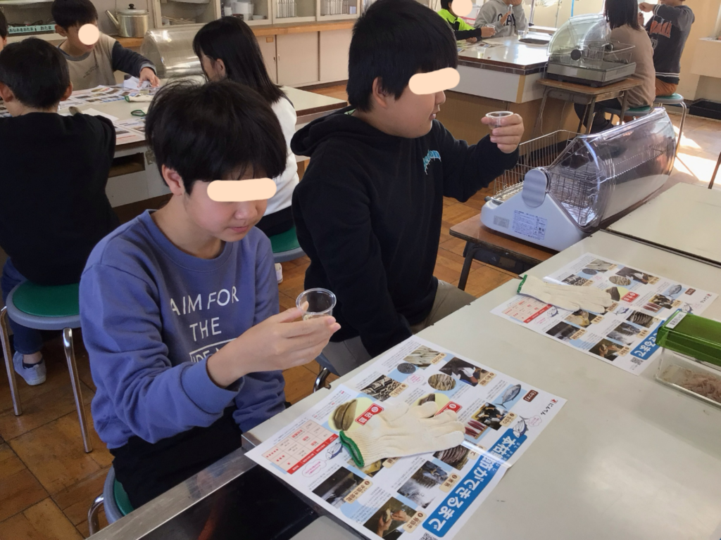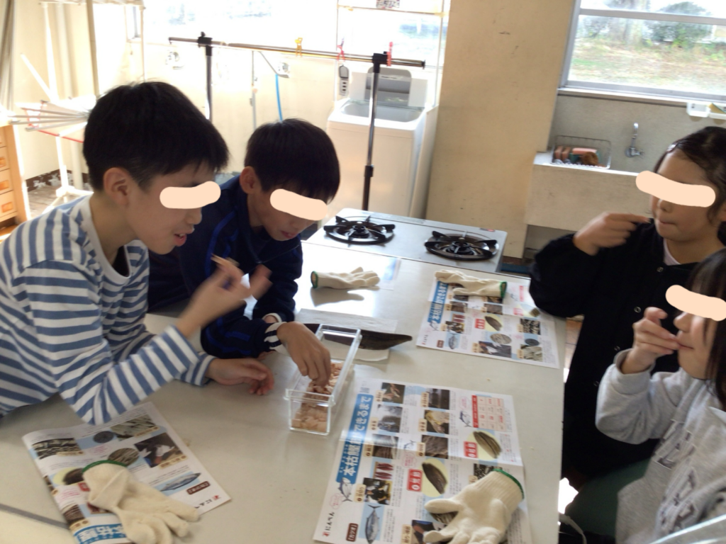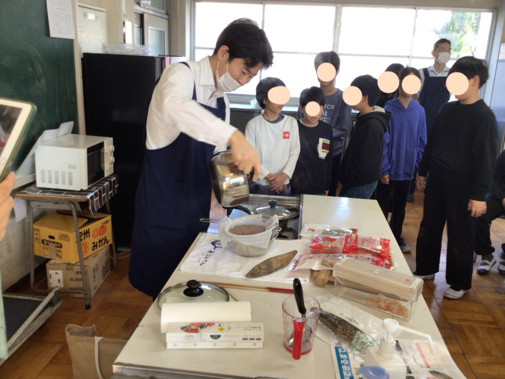 家庭科の授業では、煮干しから出汁をとっておみそ汁を作ったり、出汁や具材を考えたオリジナルみそ汁を考案したり、5年生は出汁について学んでいます。
