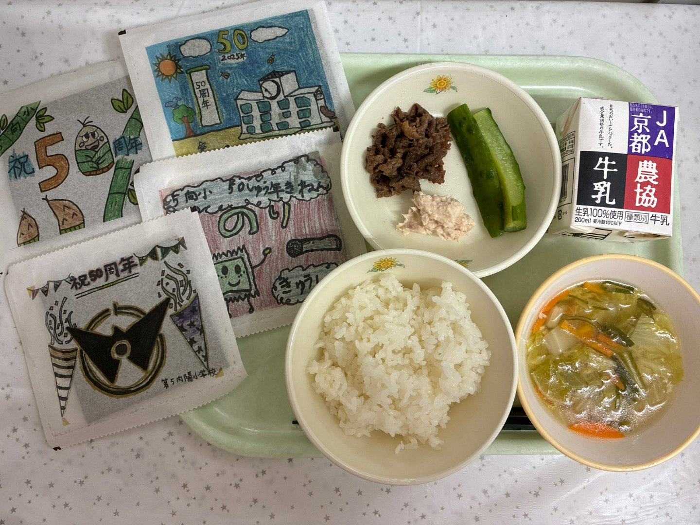 11月22日は5向小50周年記念式典があり、給食でもお祝いの手巻き寿司がでました。
