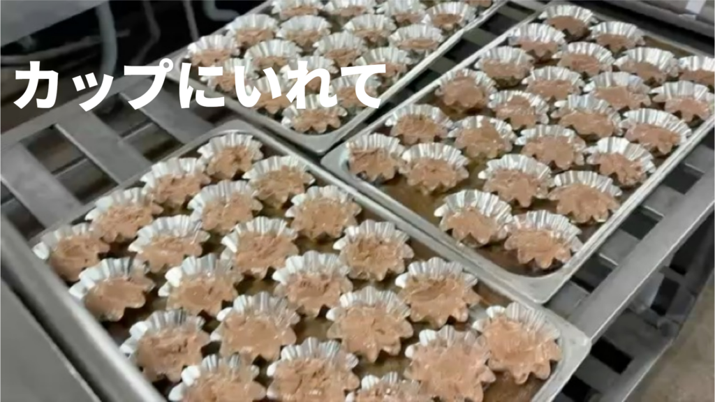 カップケーキを作る調理の様子は動画にして、給食時間にみてもらいました。