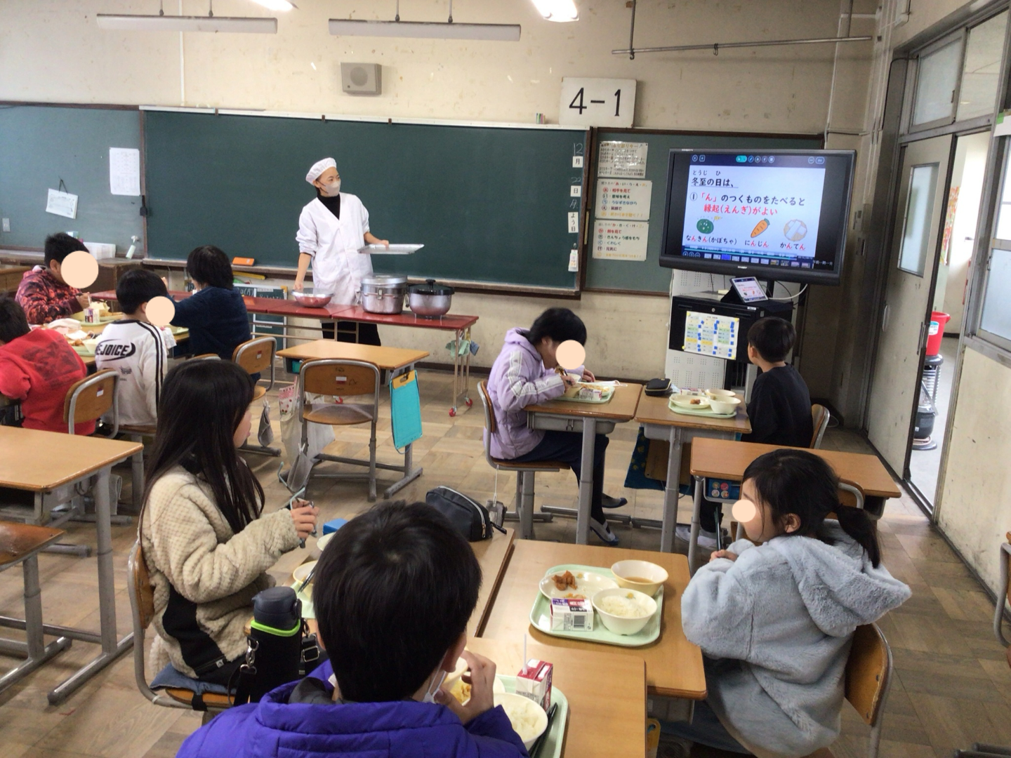 冬至の食育動画をみながら、冬至献立を味わいました。