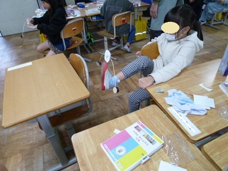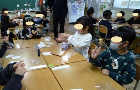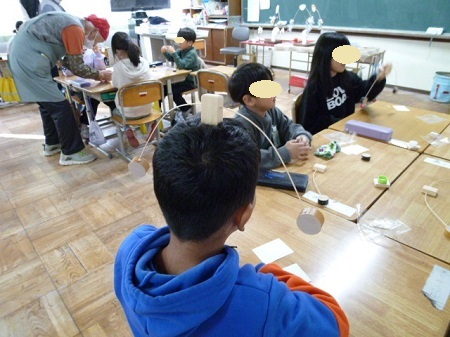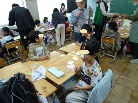 初めて作るやじろべえに1年生の子ども達もわくわく。