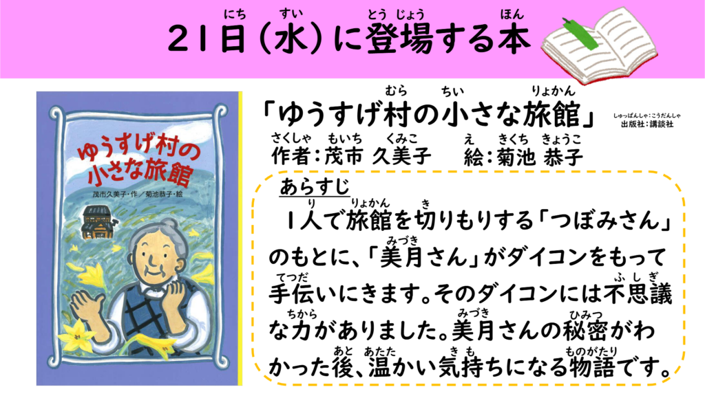 3日目の今日は、「ゆうすげ村のちいさな旅館」より、ゆうすげ村のふろふき大根が登場しました。