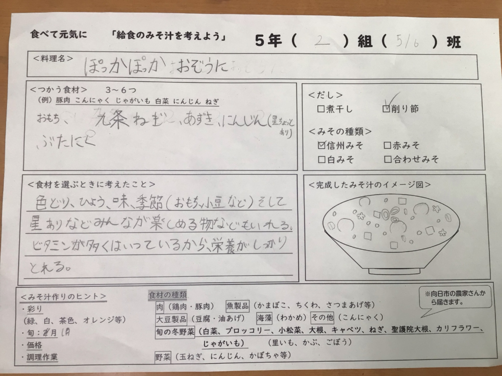 また、白みそをつかったお雑煮は、5年2組が考えたオリジナルの「ぽっかぽっかおぞうに」が登場しました。