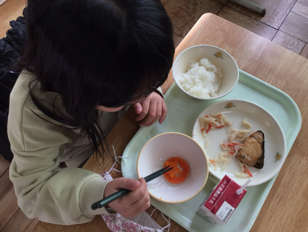 教室では、ラッキーにんじんを大切にのこして、味わっている子も…!
