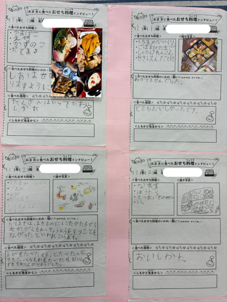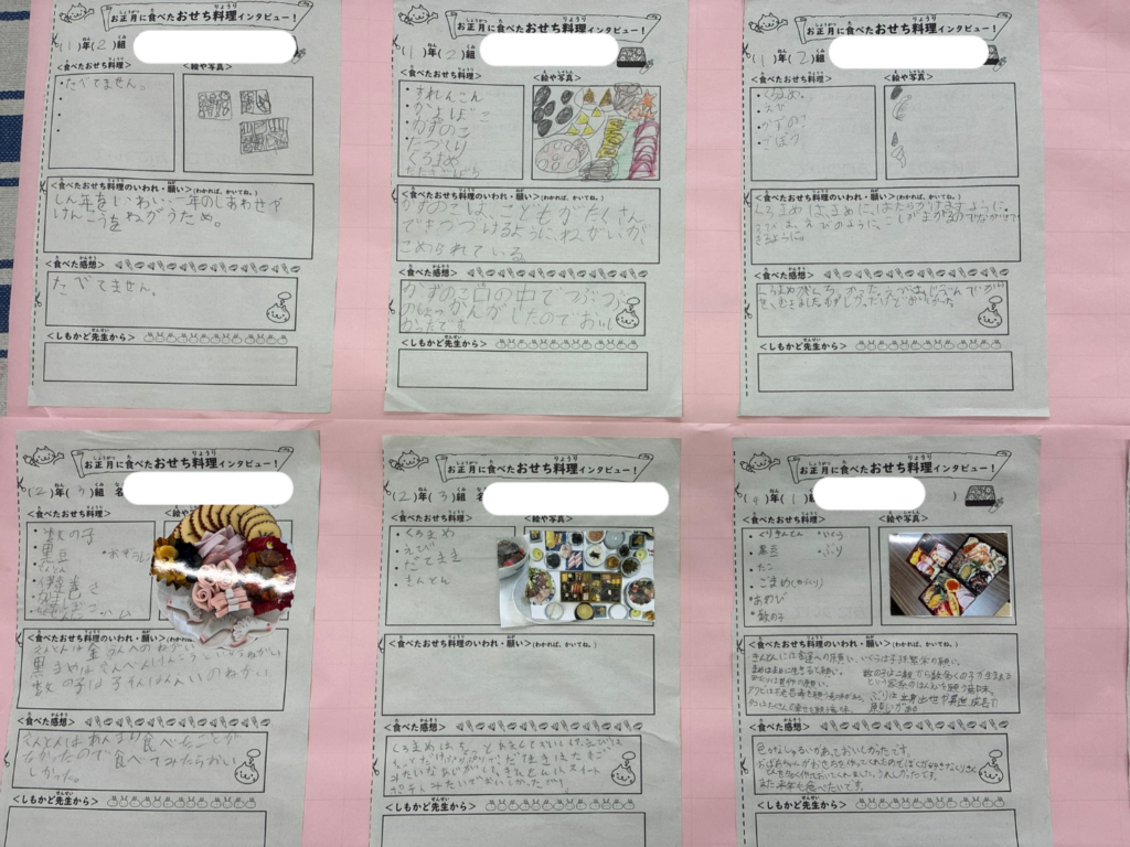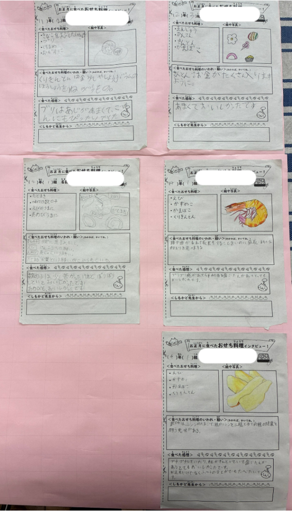 おせち料理インタビューの提出にご協力いただきました保護者のみなさま、ありがとうございました。