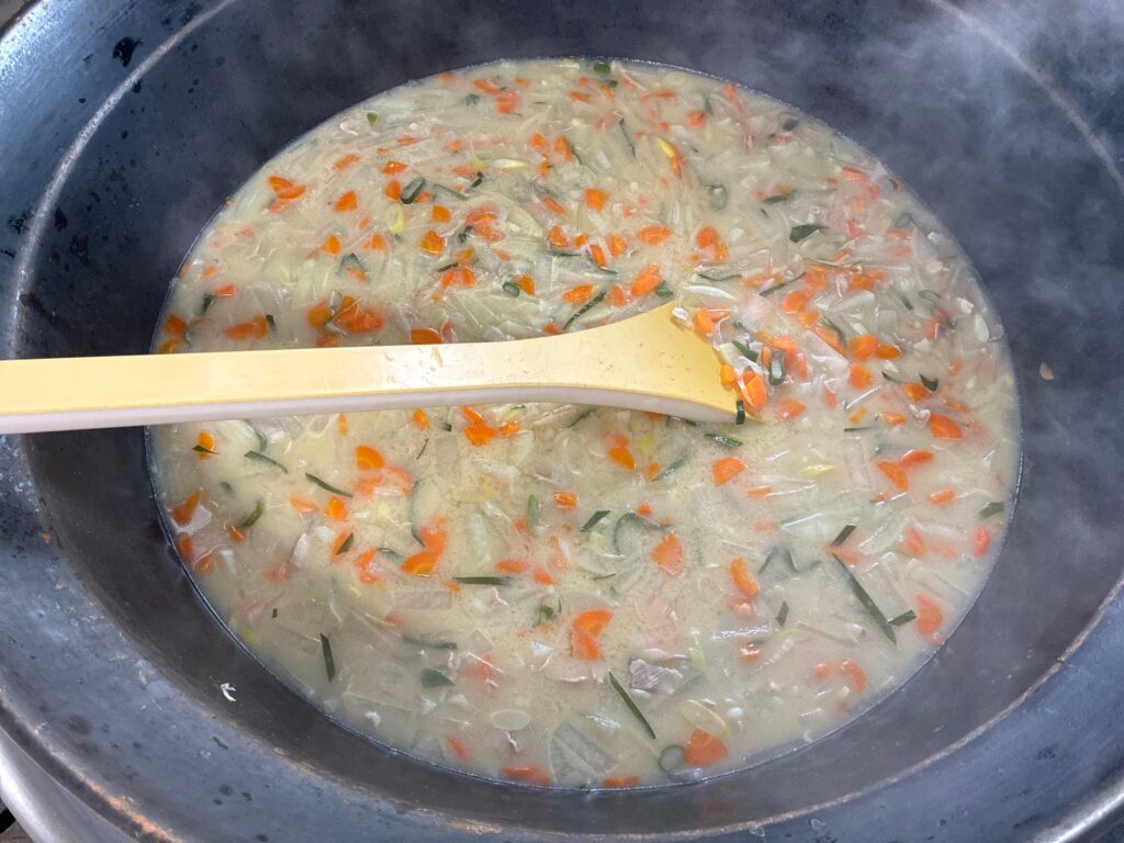 大根、にんじん、白ネギをつかい、ラッキーにんじん、一口サイズのお餅も入れました。