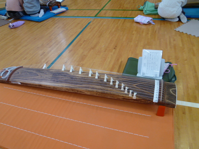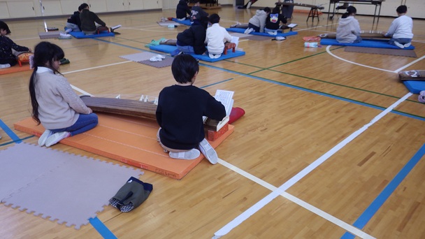 4年生では「さくら」5年生では「ゆうやけこやけ」の曲を、箏で演奏します。